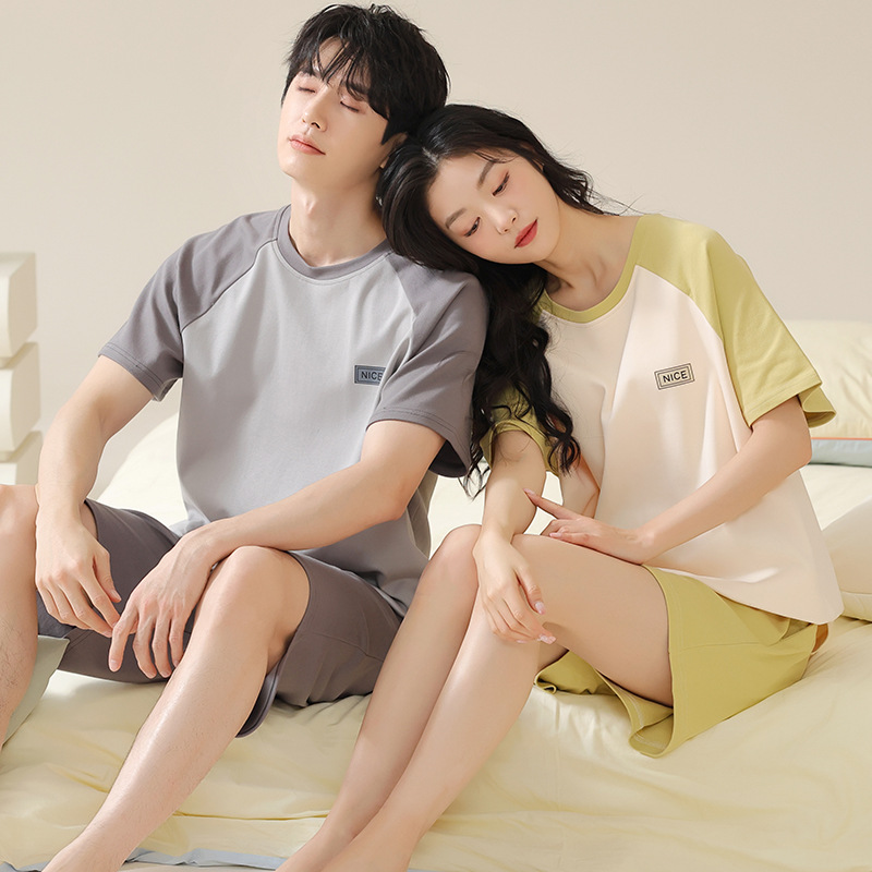 2024 커플 잠옷 남자의 여름 순수한 면 큰 크기 통기성 여성의 캐주얼 외부는 가슴 패드와 홈 옷을 입고