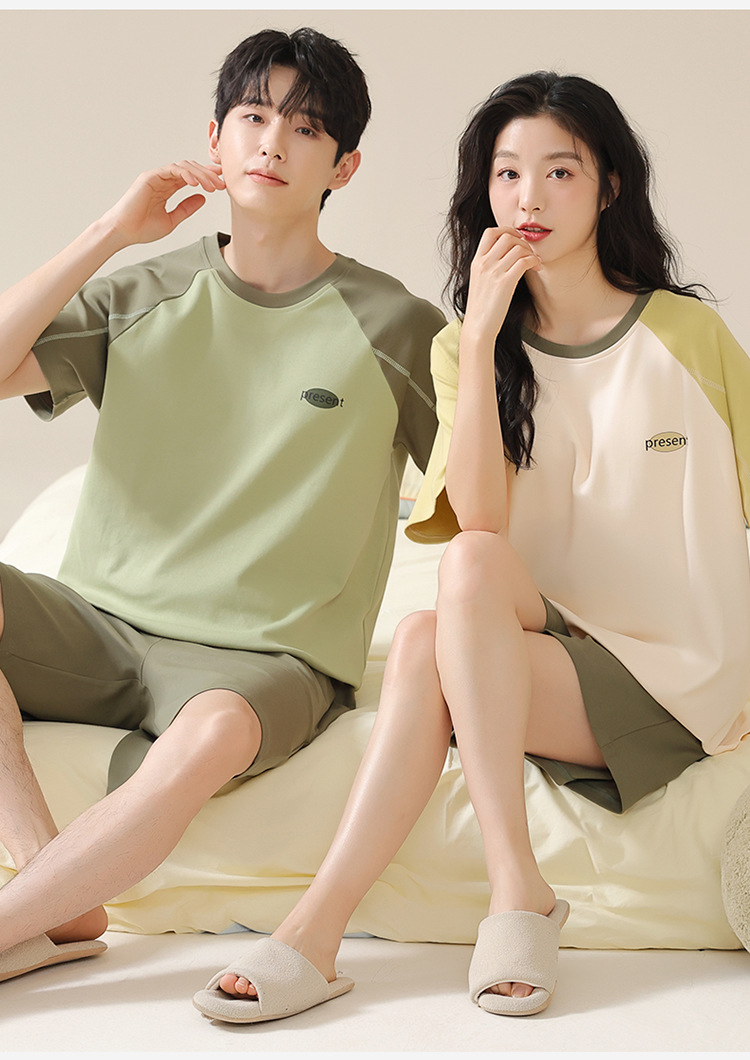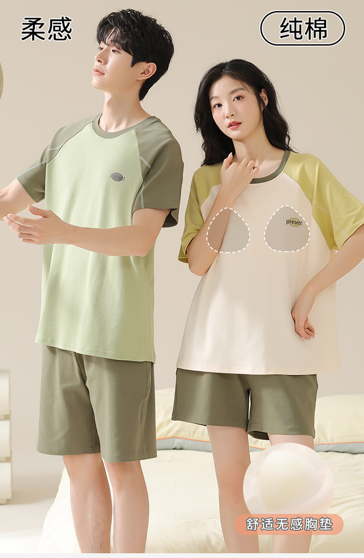 2024 커플 잠옷 남자의 여름 순수한 면 큰 크기 통기성 여성의 캐주얼 외부는 가슴 패드와 홈 옷을 입고스토어 가기