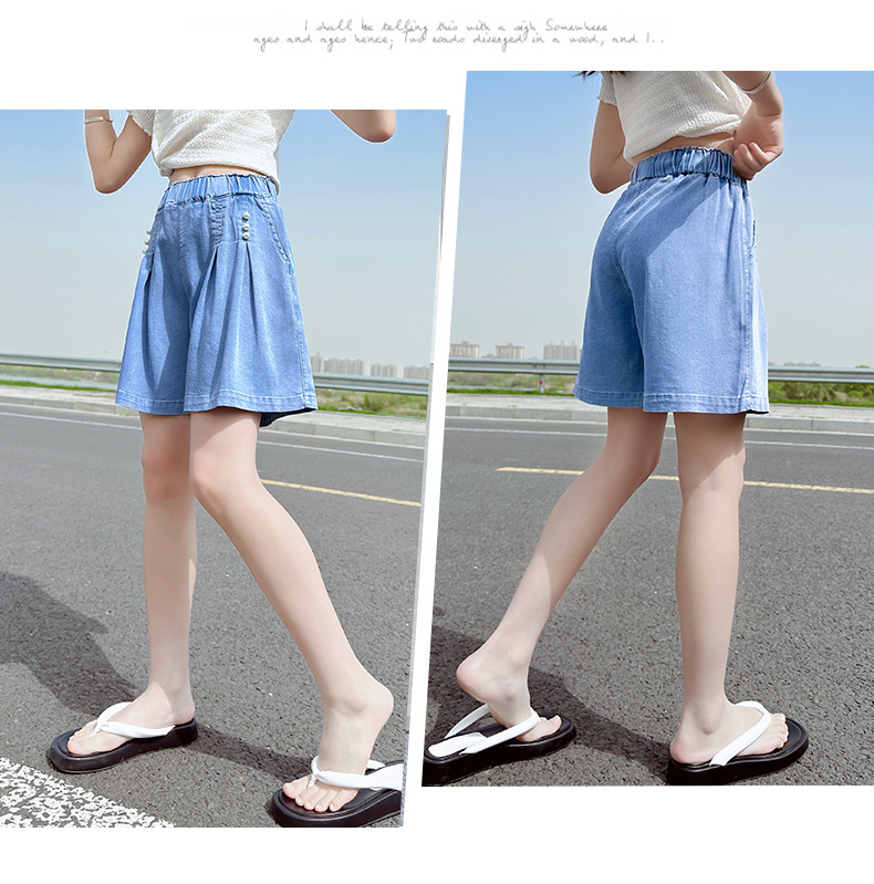 소녀 여름 얇은 인터넷 연예인 데님 반바지 중 큰 어린이 2024 유행 서양식 풀리기 패션 바지스토어 가기