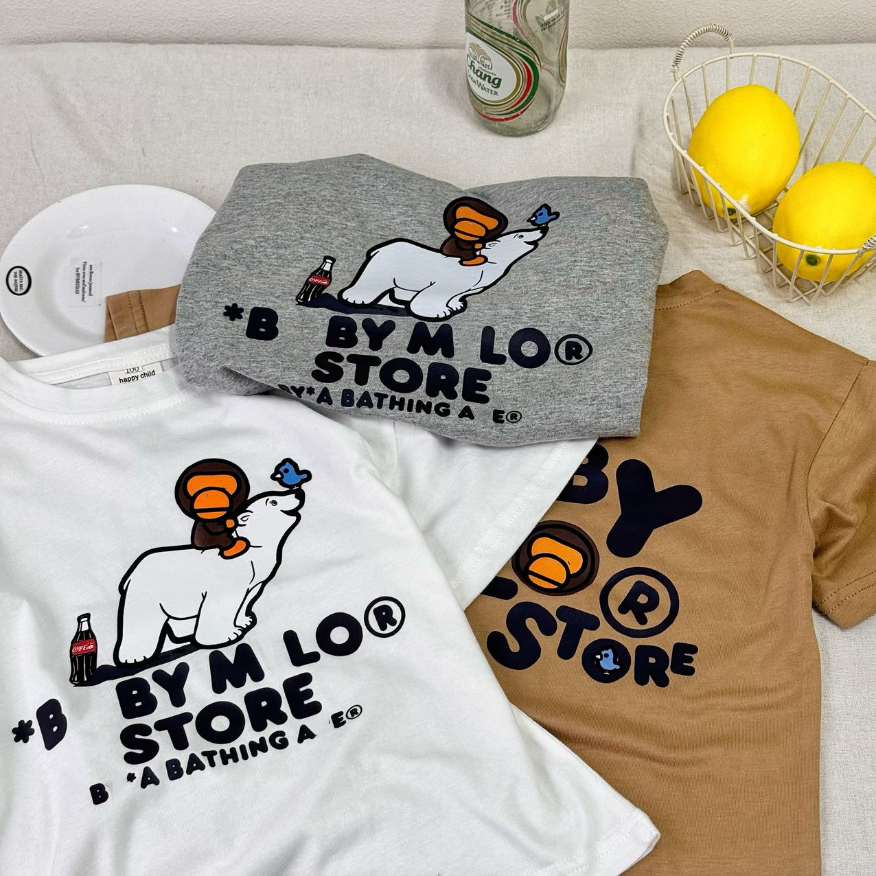일본 조수 브랜드 아동복 2024 여름 새로운 소년 편지 만화 반팔 티셔츠 소녀 한 세대 자리스토어 가기