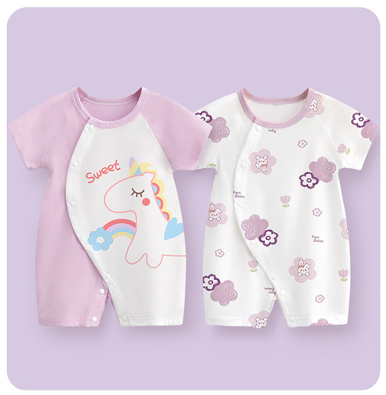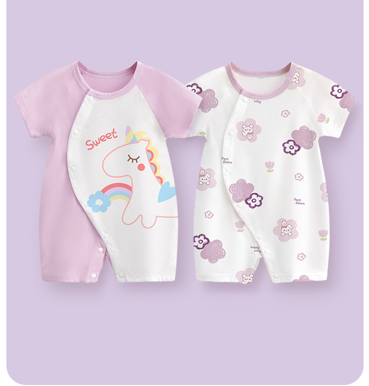 아기 점프수트, 아동 순면 아동복, 신생아 롬퍼, 여름용 얇은 반팔 아웃도어 의류스토어 가기