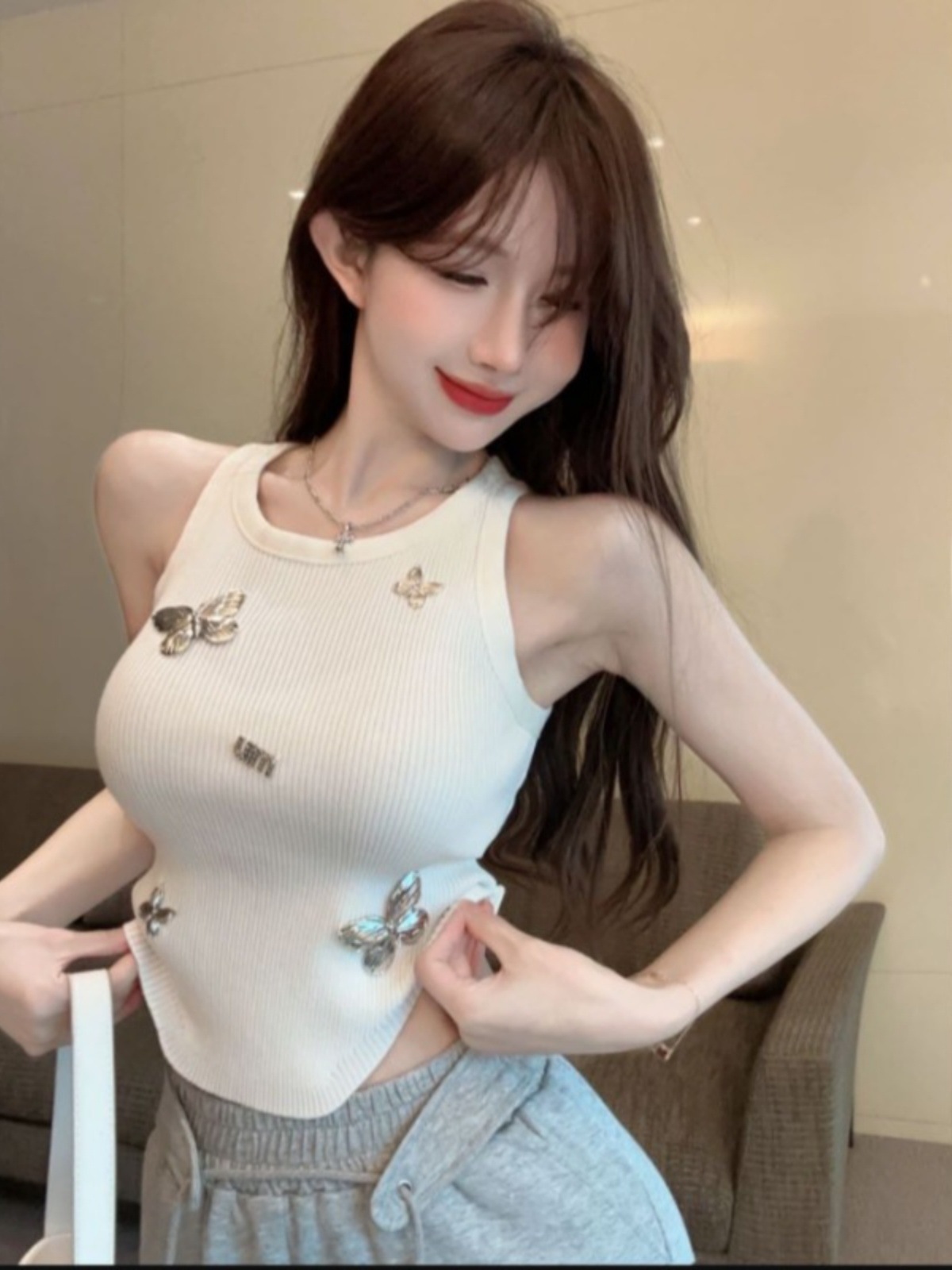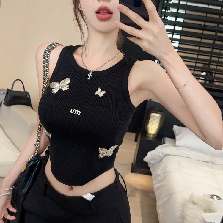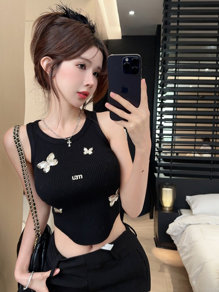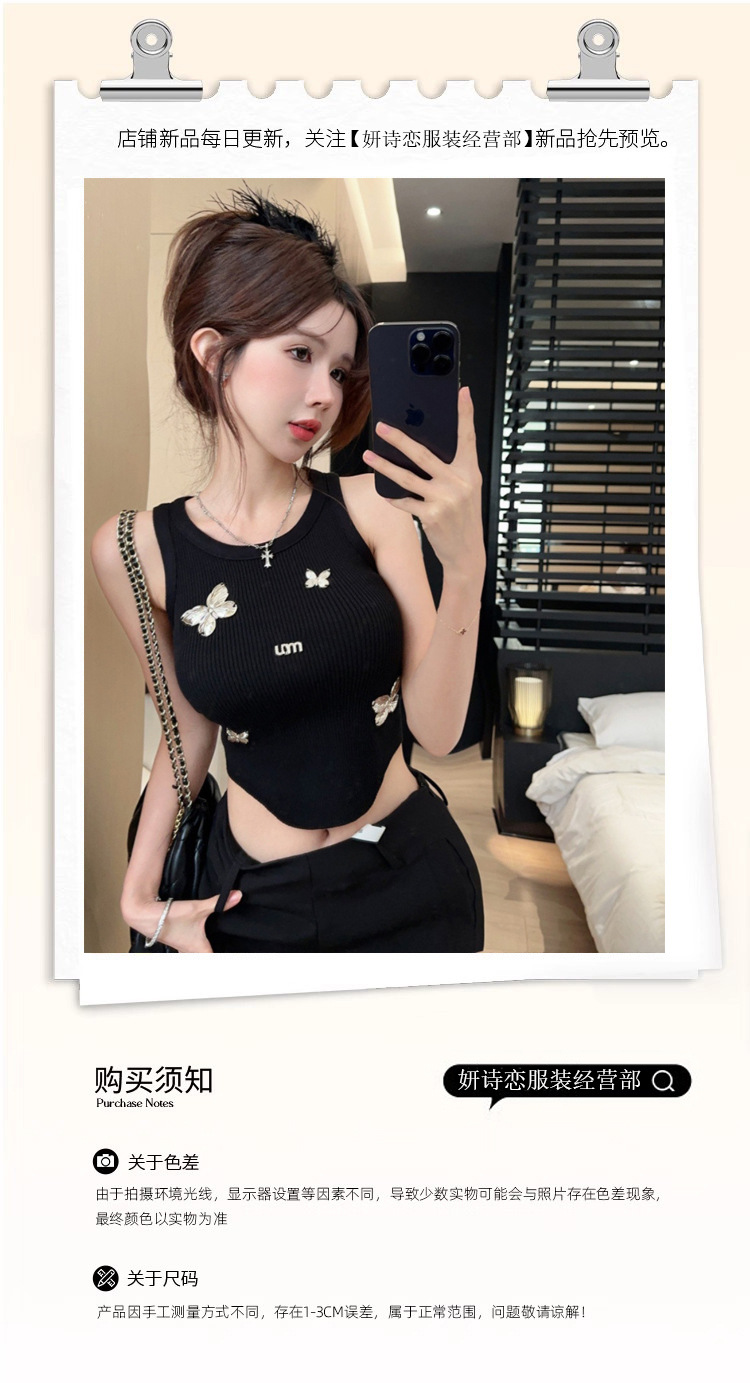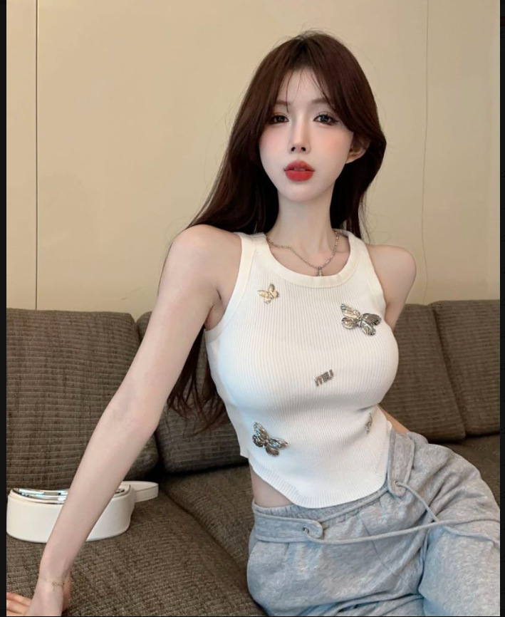 미국 스타일의 뜨거운 소녀 나비 스트랩 탑 짧은 틈새 슬림 핏 섹시한 민소매 조끼 소녀 여름 외복스토어 가기