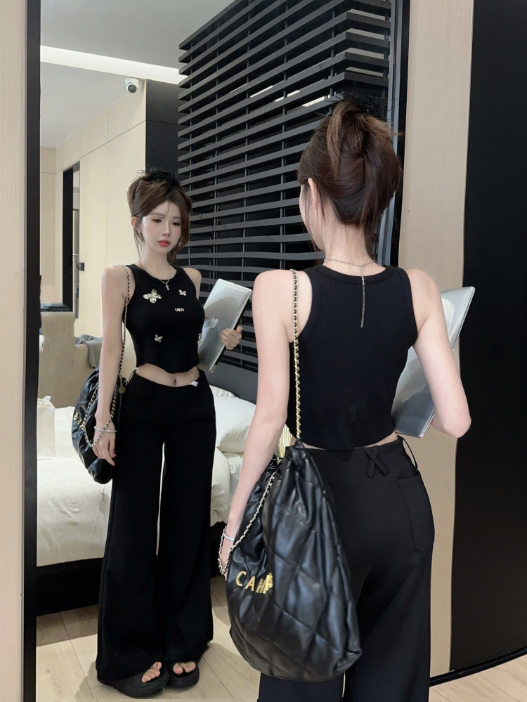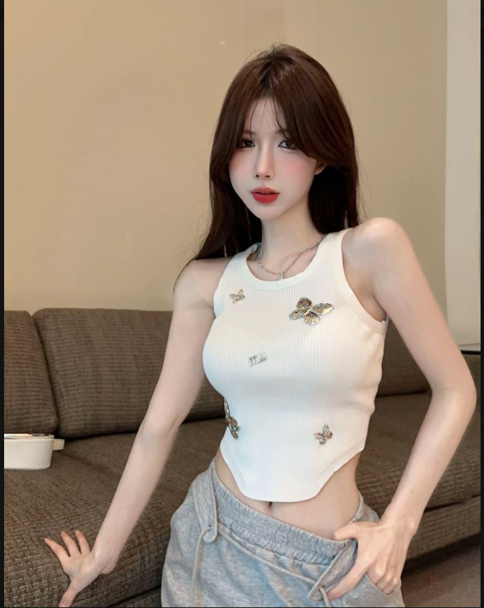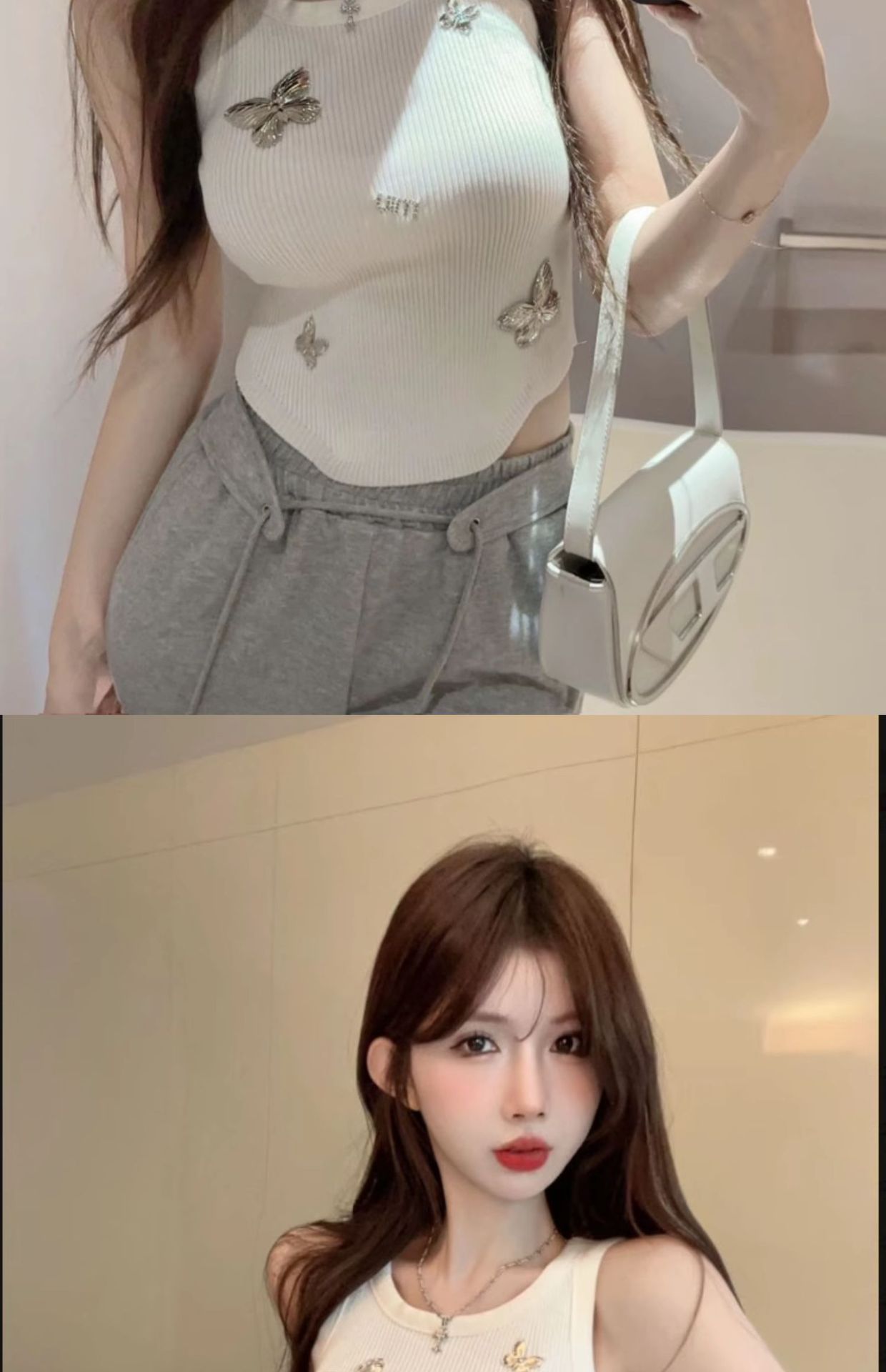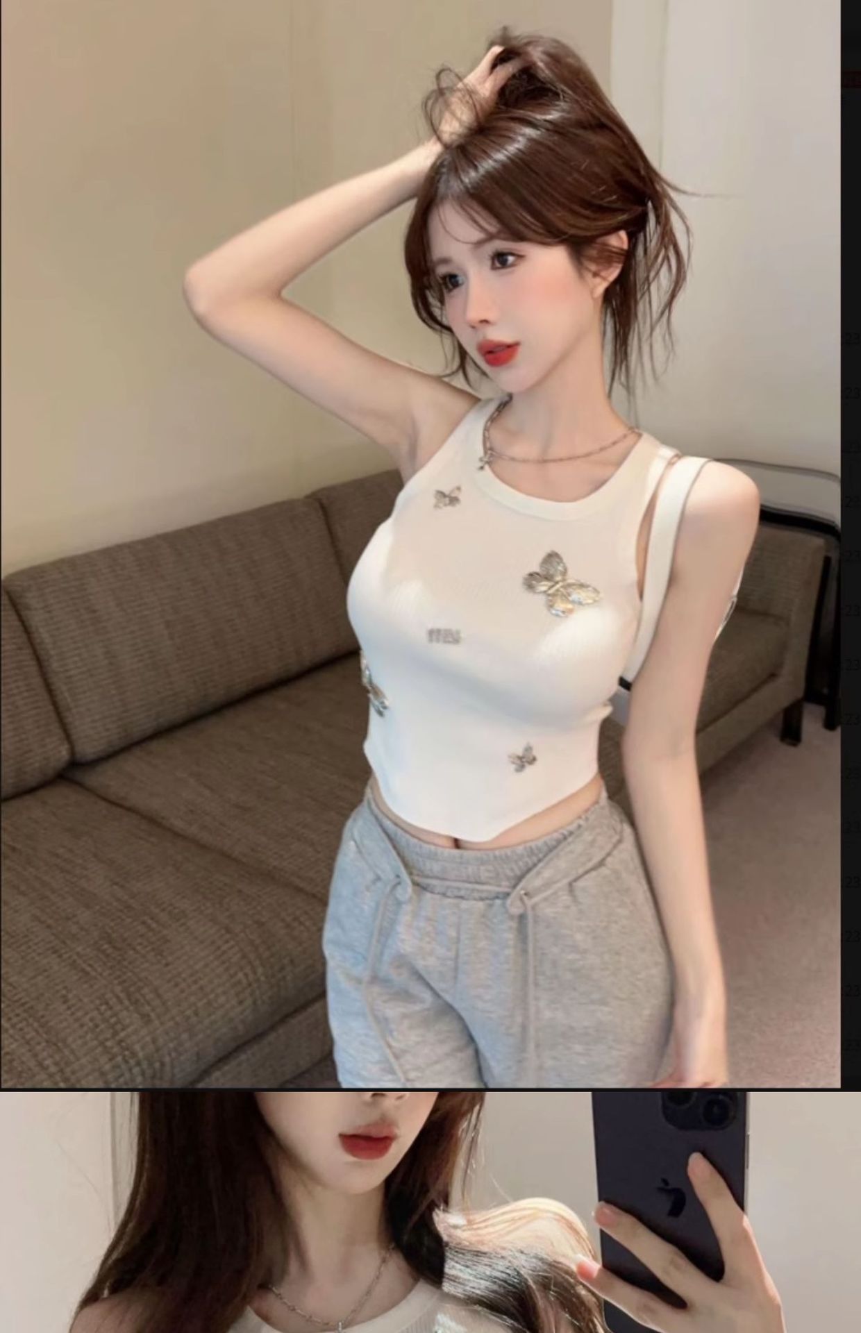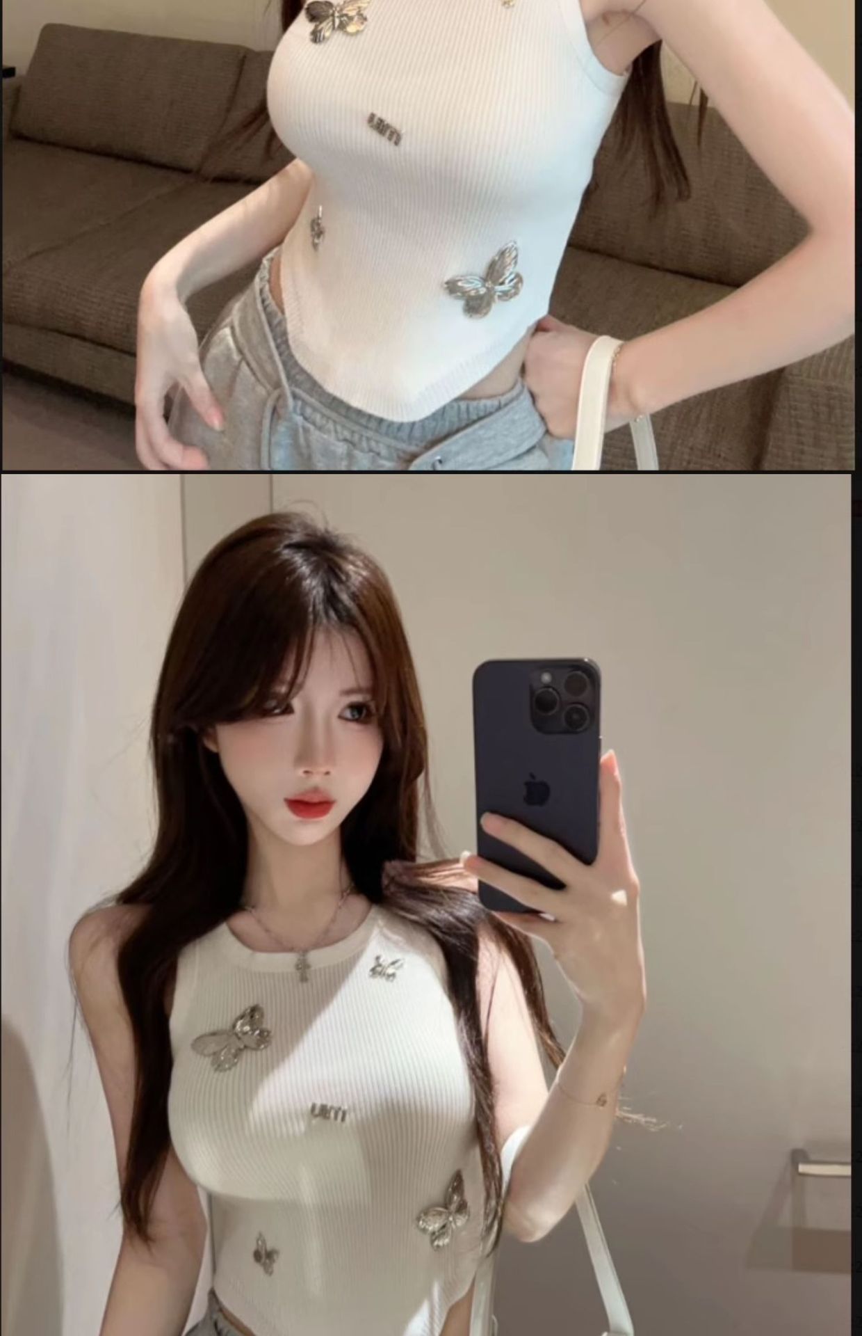 미국 스타일의 뜨거운 소녀 나비 스트랩 탑 짧은 틈새 슬림 핏 섹시한 민소매 조끼 소녀 여름 외복스토어 가기