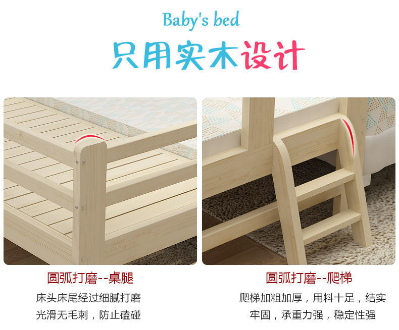 무료 배송 넓은 침대 스티칭 침대 옆 단단한 나무 어린이 침대 가드 레일 싱글 침대 소년 소녀 작은 침대 소나무 도매스토어 가기