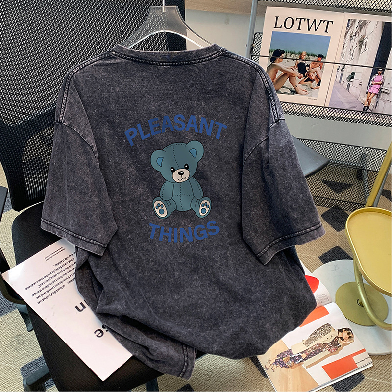 아메리칸 스타일 레트로 트렌디 브랜드 베어 반팔 티셔츠 여성 여름 디자인 센스 느슨한 틈새 오래 된 달콤한 쿨 탑스토어 가기