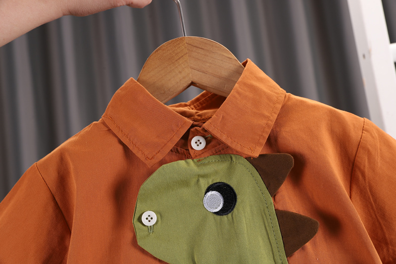 • 짧은 소매 공룡 셔츠 세트 오렌지