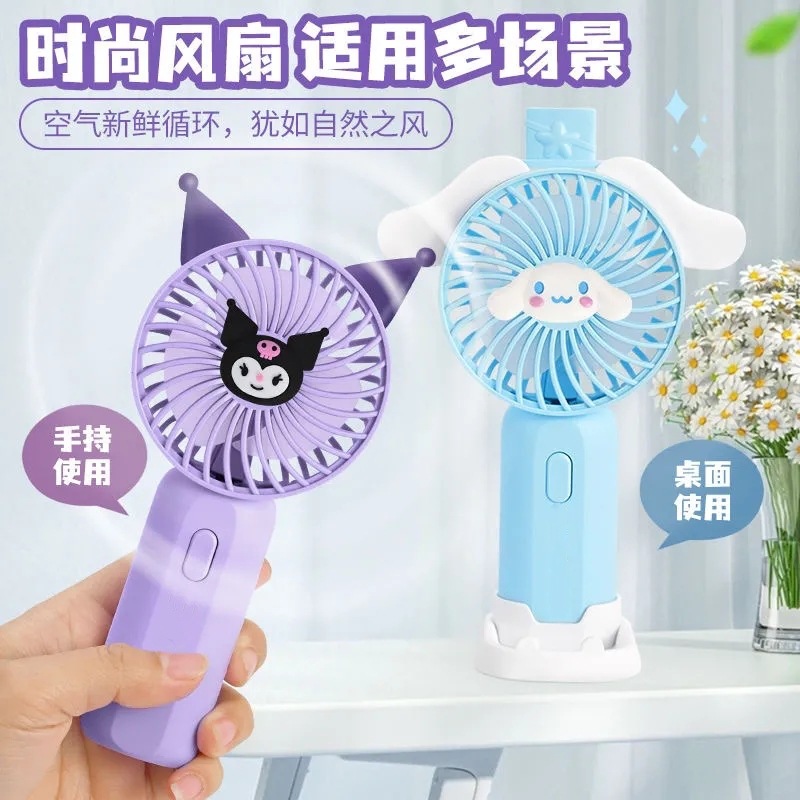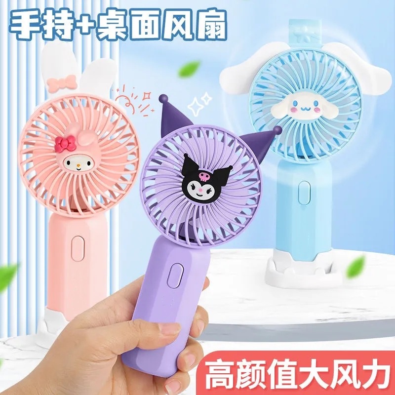 새로운 귀여운 산리오 핸드 헬드 작은 팬 usb 충전식 휴대용 자동 팬 학생 기숙사 팬