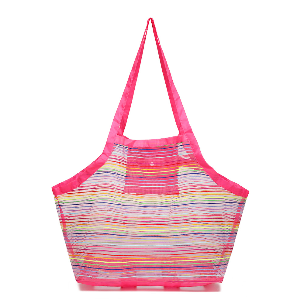 국경 다채로운 어린이 해변 메쉬 가방 다기능 컬러 해변 장난감 보관 가방 모래 파기 도구 수영 가방
