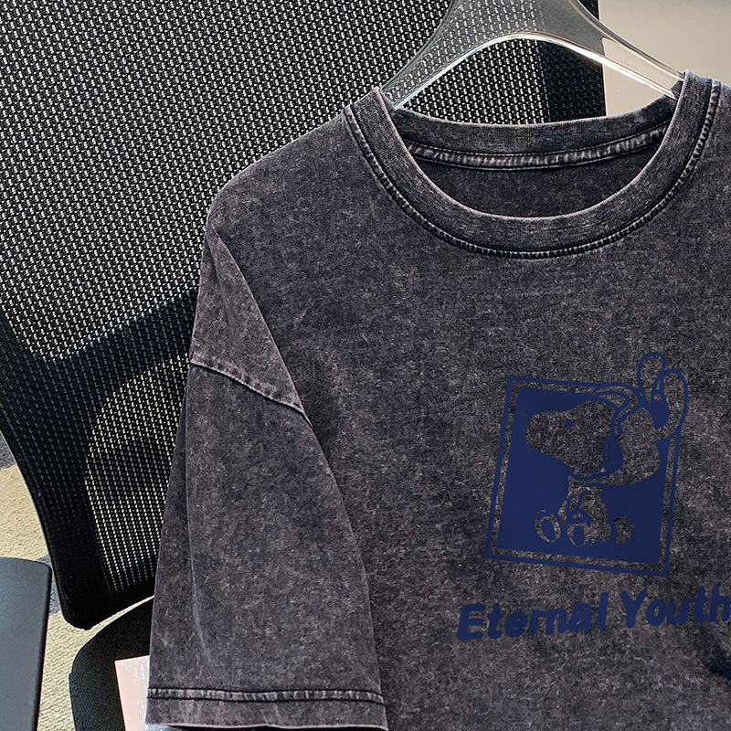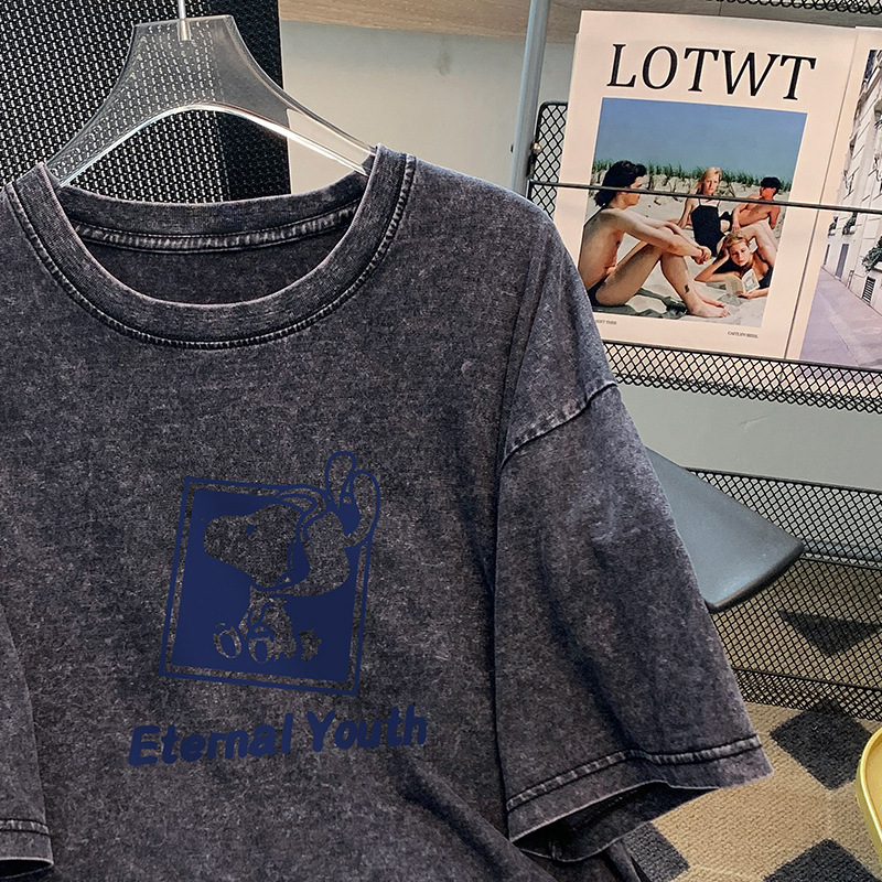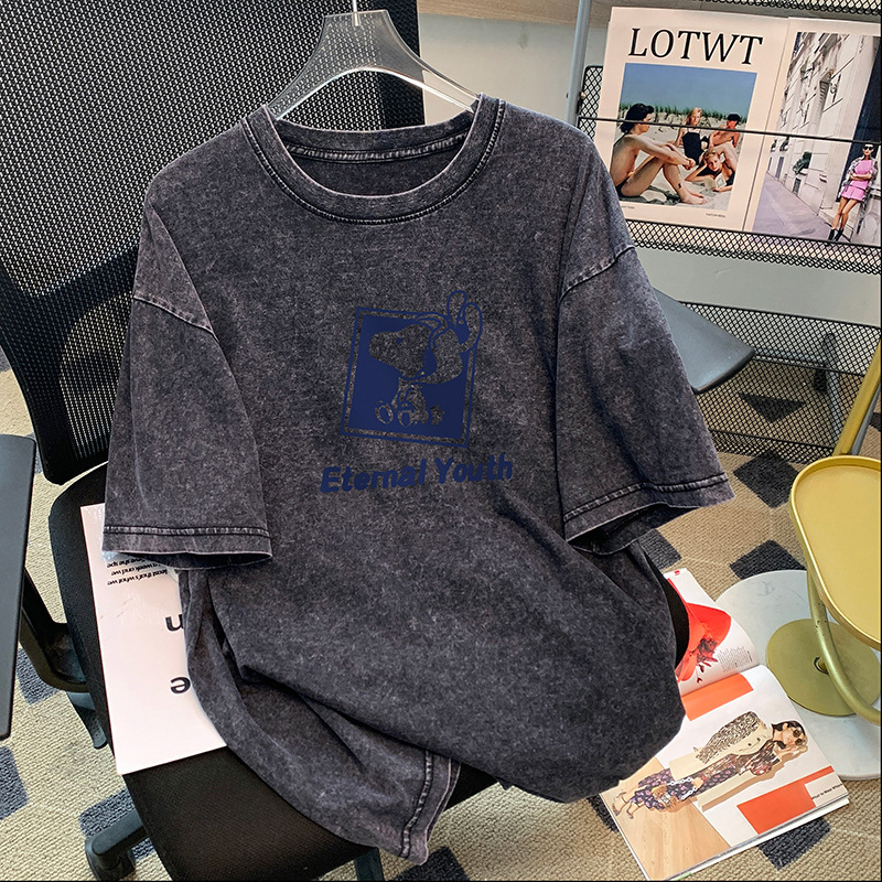 통통녀 여성 세탁 오래 된 반팔 티셔츠 남성과 여성 여름 미국 복고풍 캐주얼 청소년 패션 브랜드 반소매 티셔츠스토어 가기