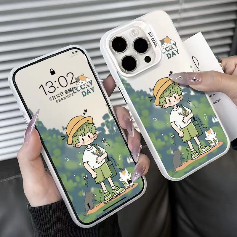 색칠 실버 모자 녹색 머리 소년 애플 14promax 전화 케이스 iPhone13pro 드롭 방지 12 성격스토어 가기