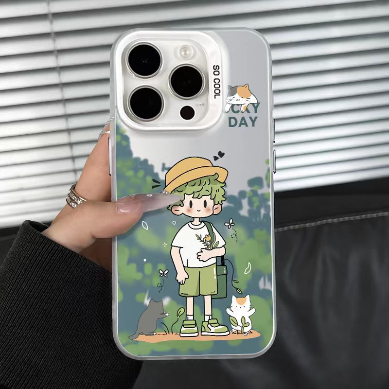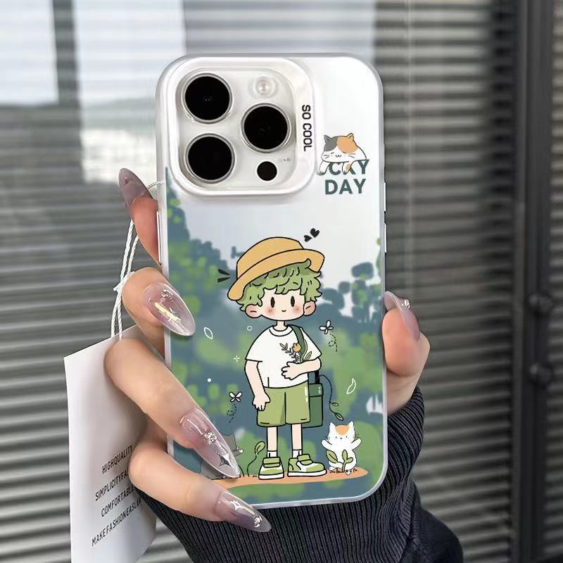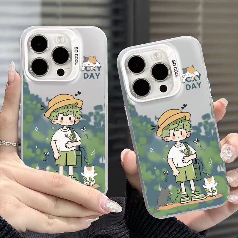 색칠 실버 모자 녹색 머리 소년 애플 14promax 전화 케이스 iPhone13pro 드롭 방지 12 성격