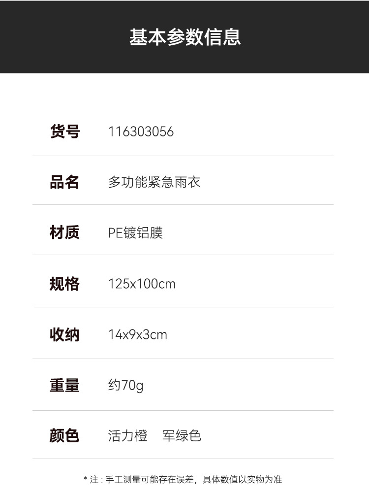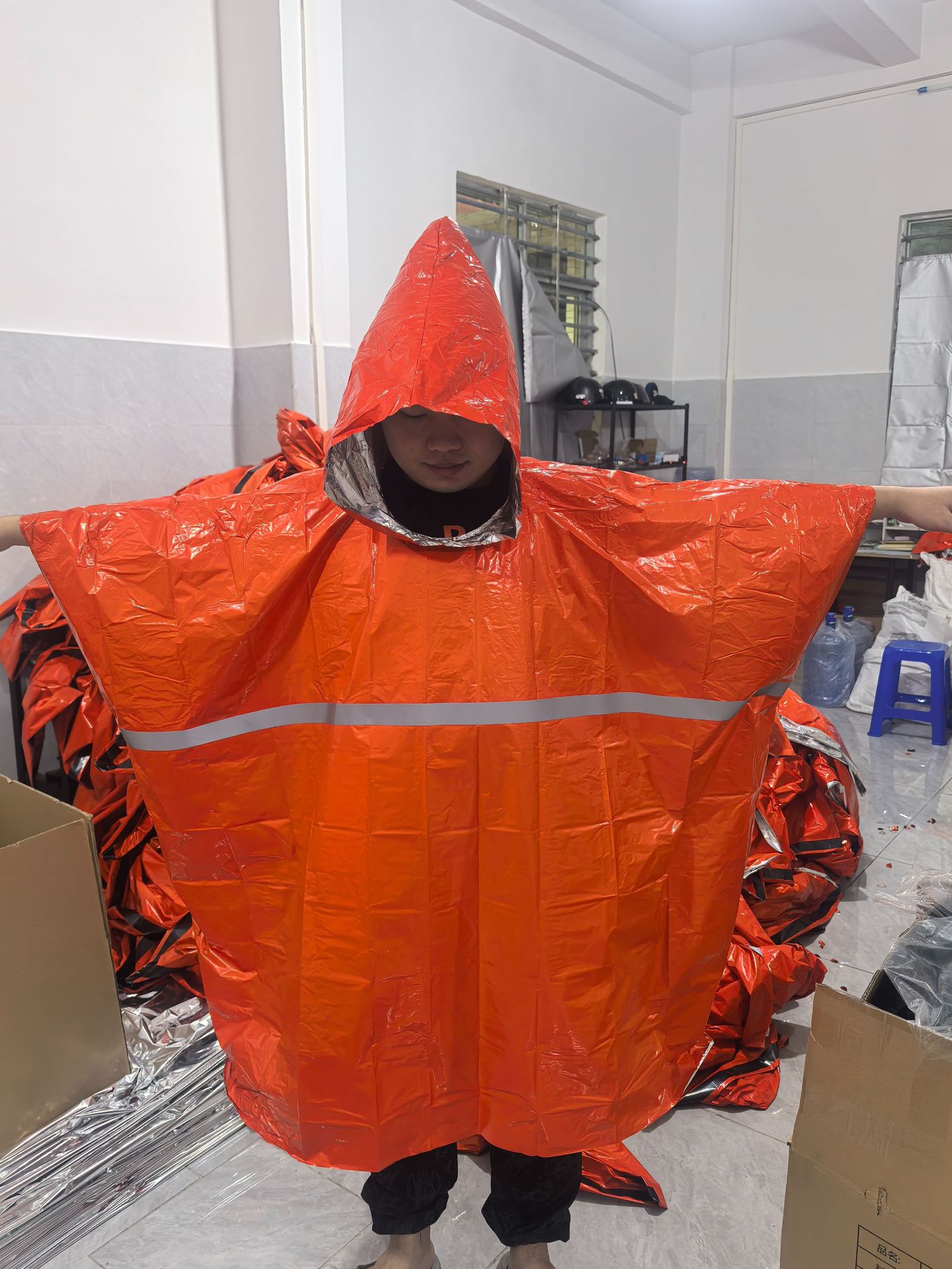 • 반사 스트립이 있는 주황색 비옷(100*130cm)