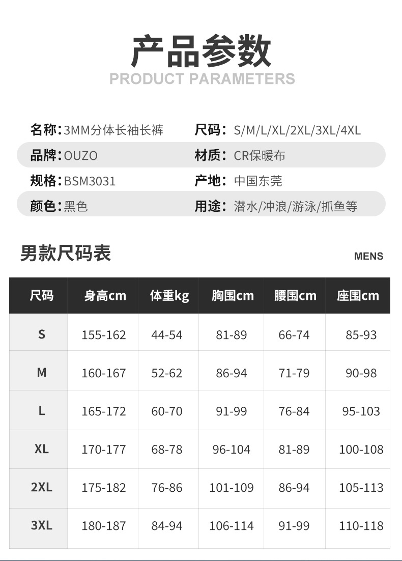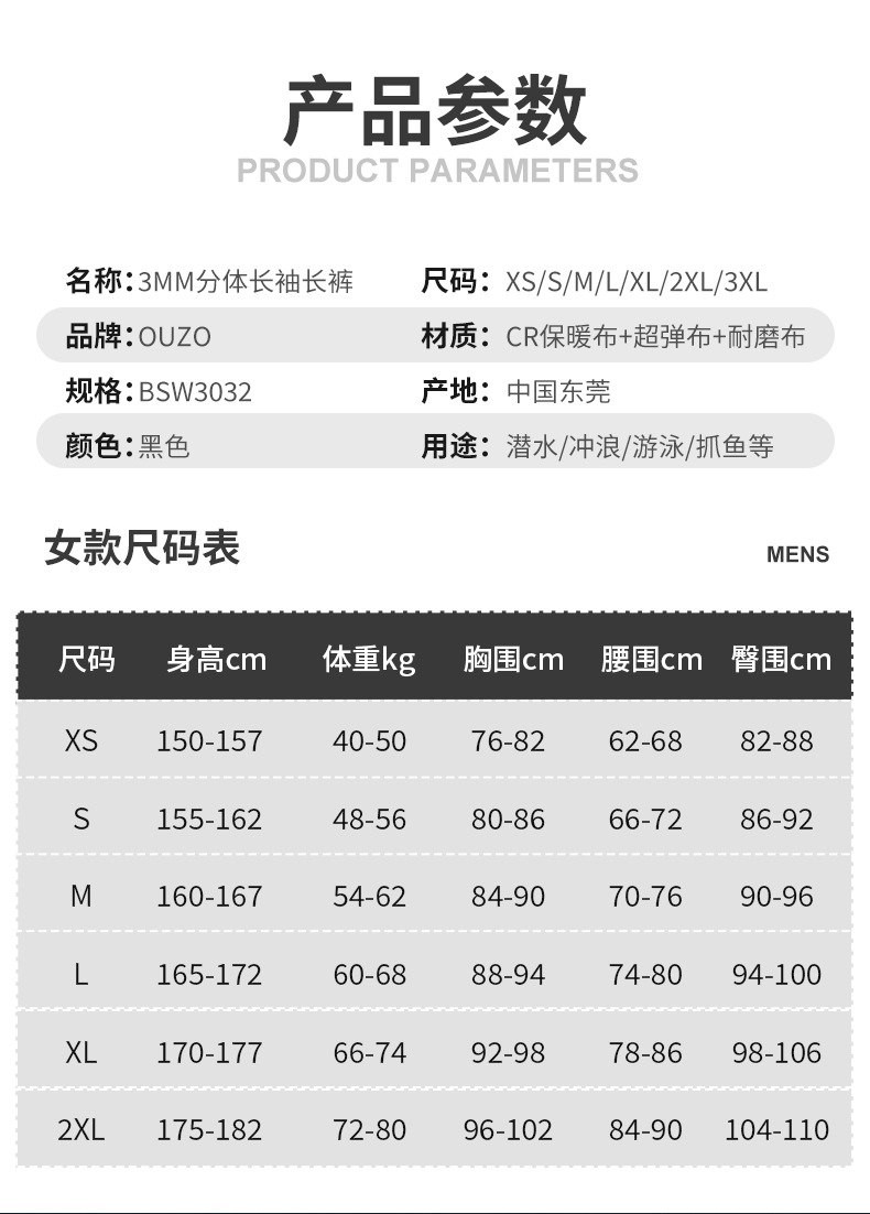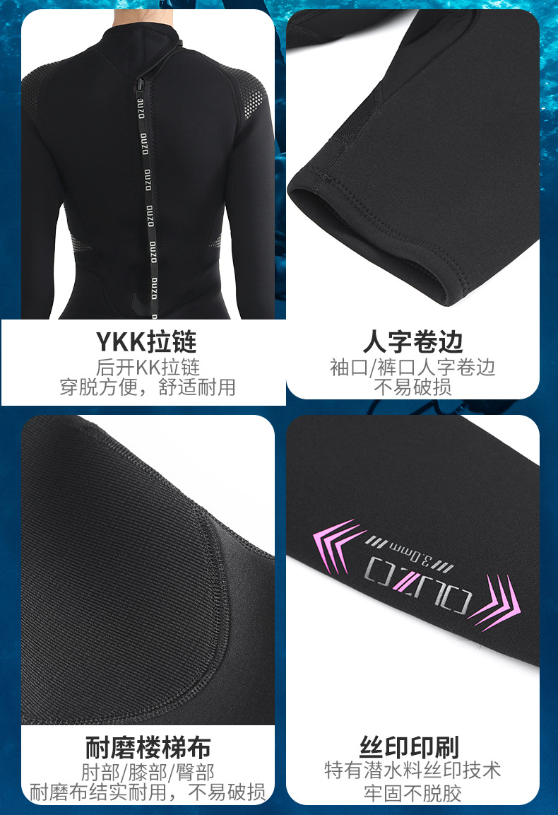 3mm分体潜水服女长袖速干冲浪服男长裤防寒保暖浮潜加绒潜水衣