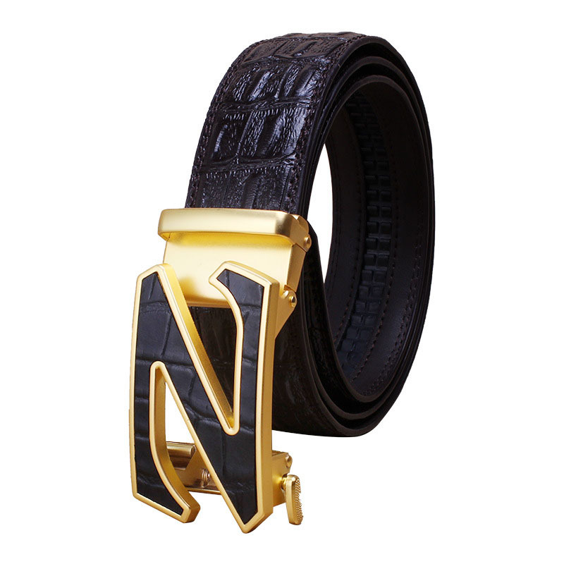 새로운 하이 엔드 센스 악어 패턴 벨트 남성용 하이 엔드 가죽 자동 버클 소 가죽 벨트 남성용 올 매치 벨트 제조업체스토어 가기