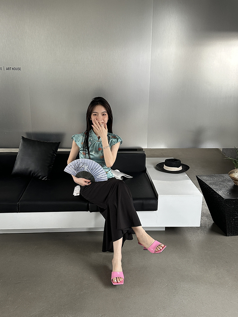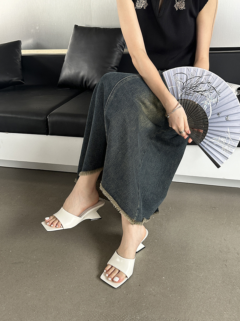 2025년 봄/가을 신상 프렌치 스타일 웨지힐 샌들 오픈토 하이힐 슬리퍼 여성용 외출용스토어 가기