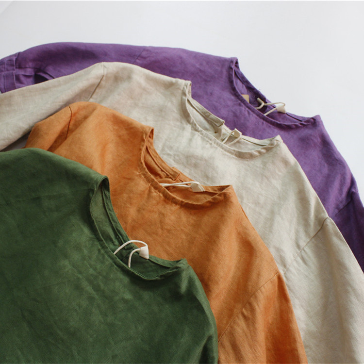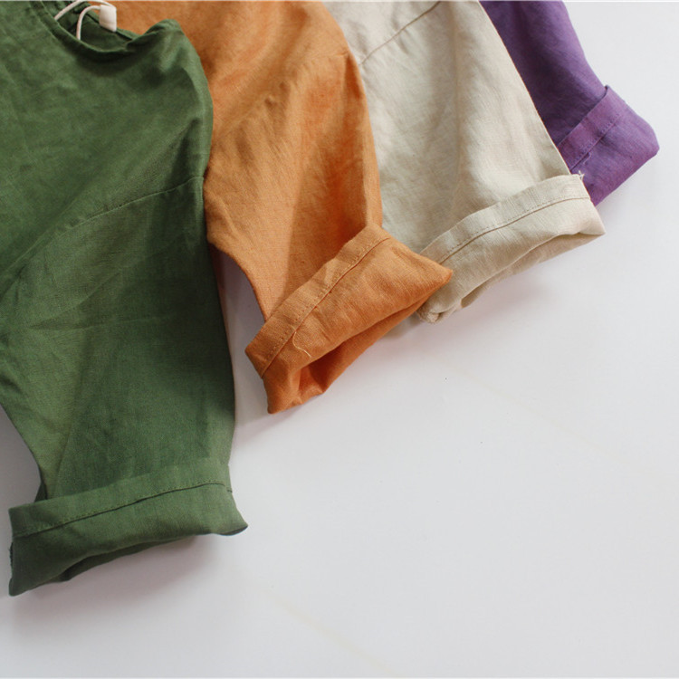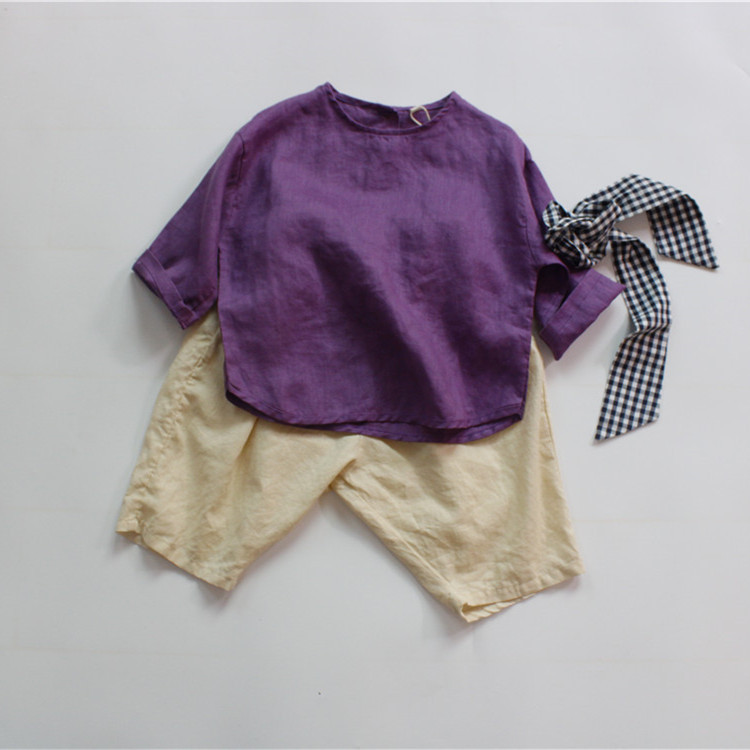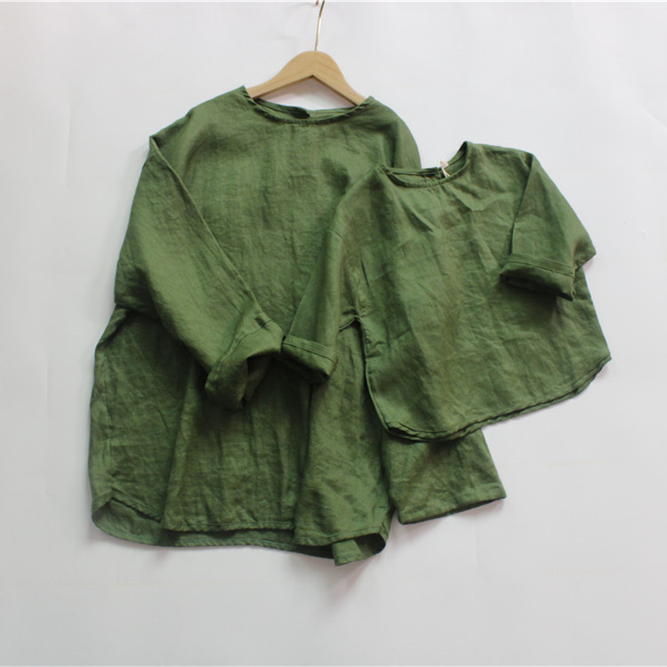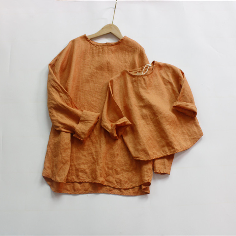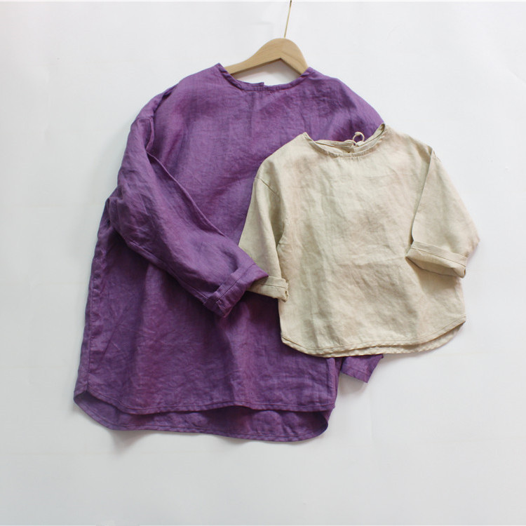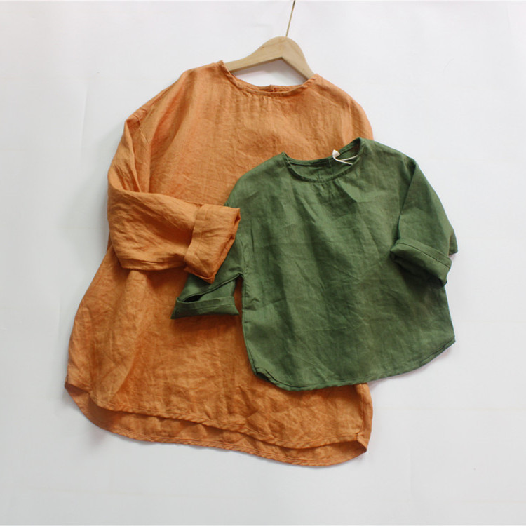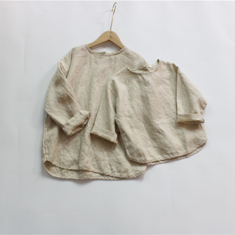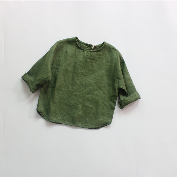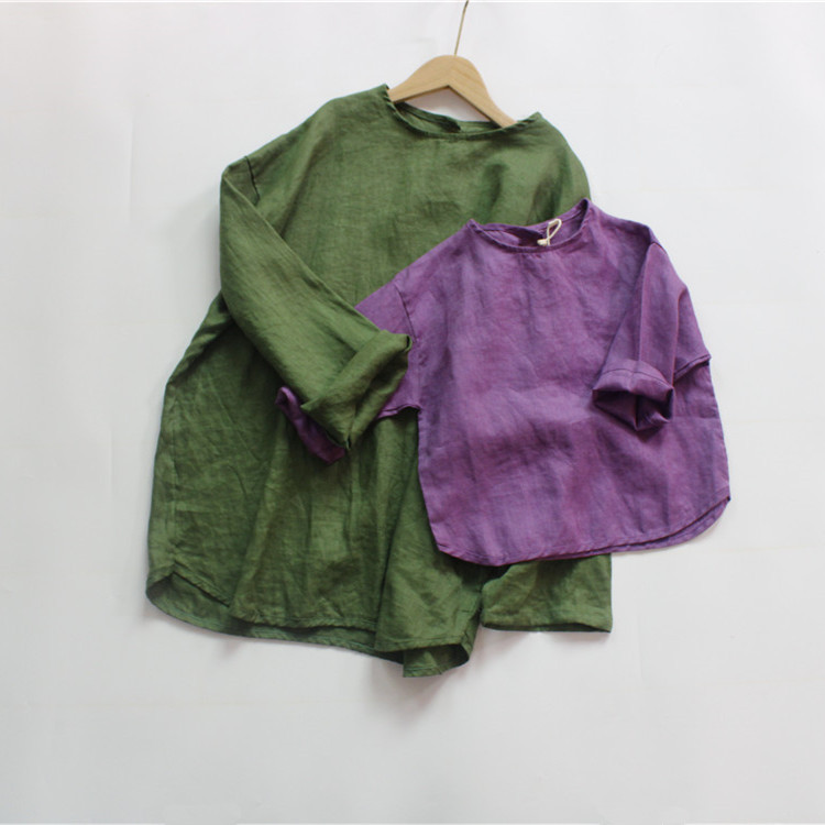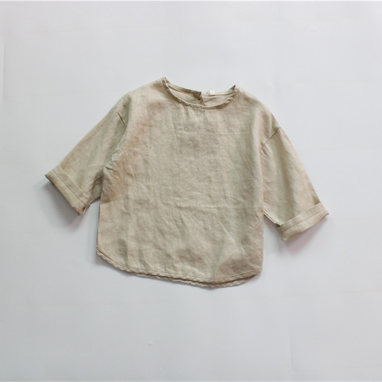 2025 가을 아동용 티셔츠 긴팔 남아 린넨 단색 라운드넥 한국 스타일 다용도 루즈핏 여아 상의 도매