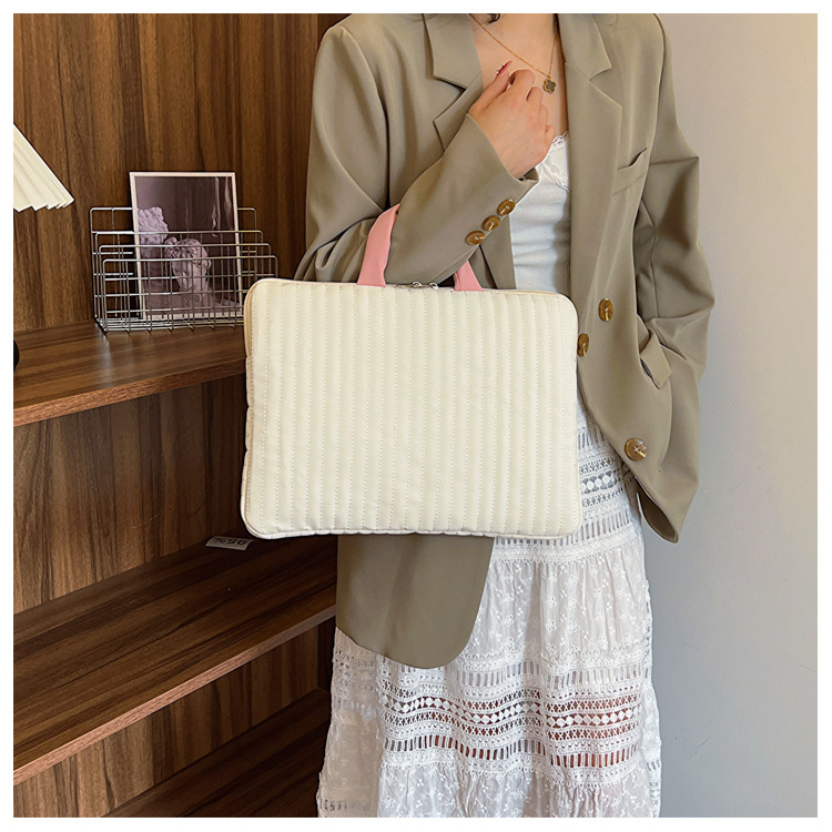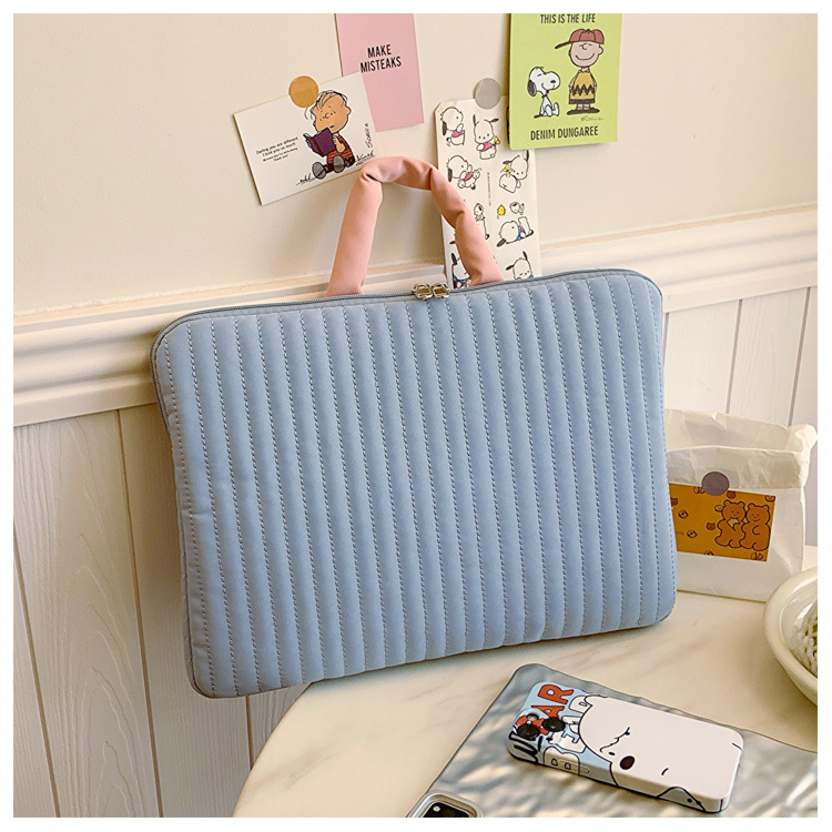 한국판 작은 신선한 줄무늬 대비 컬러 휴대용 라이너 백 11 인치 플랫 백 14 인치 노트북 충격 방지 컴퓨터 가방스토어 가기