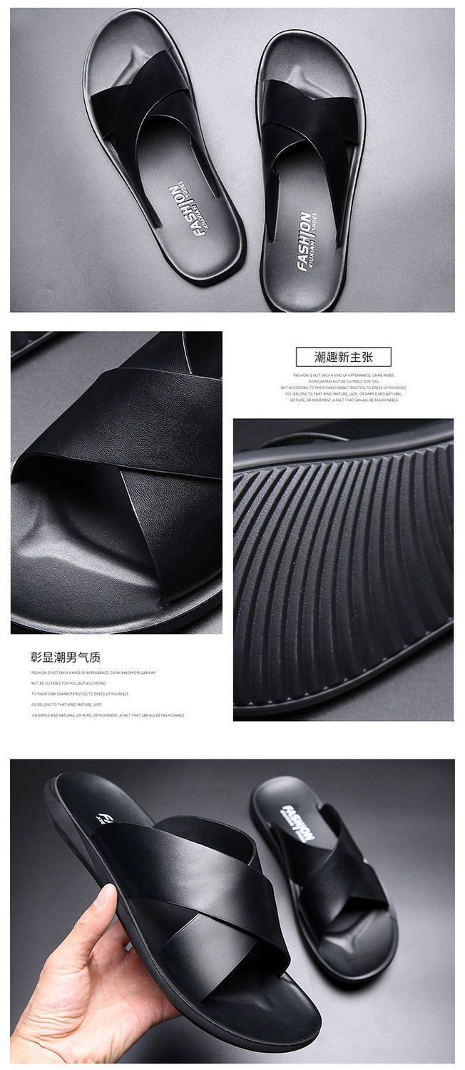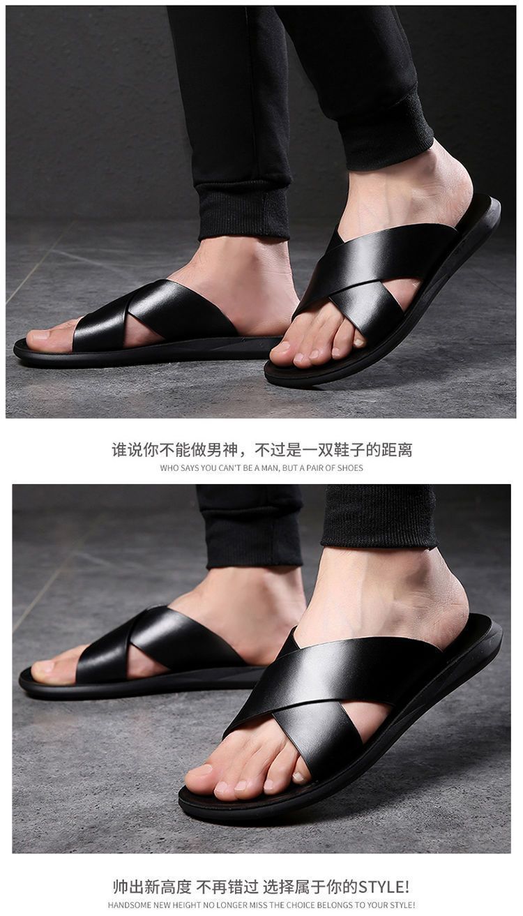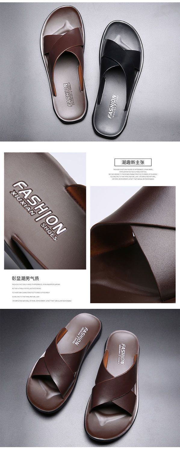 여름 새로운 야외 착용 슬리퍼 남성 정품 가죽 한국 스타일 유행 남성용 샌들 미끄럼 방지 남성용 비치 신발