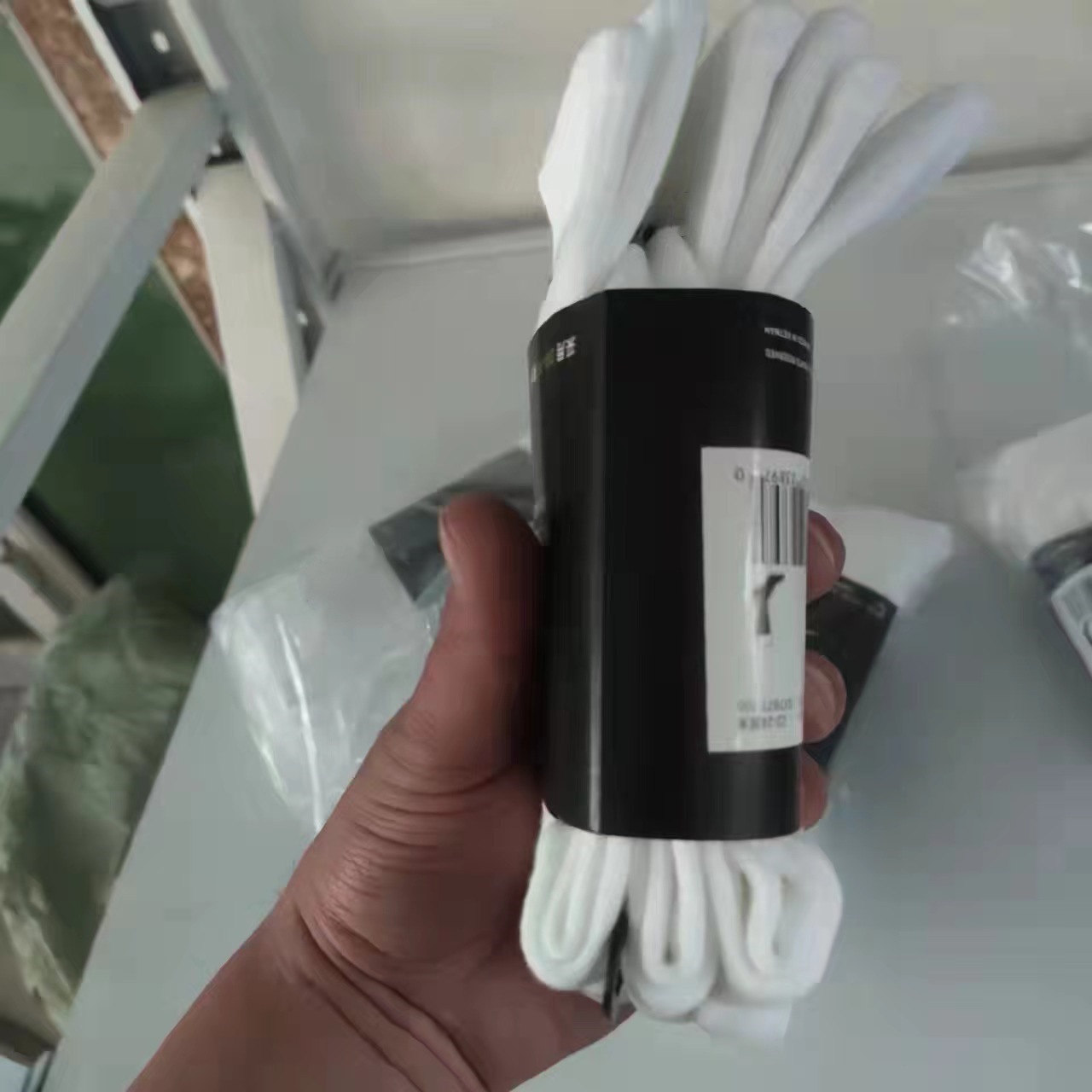 • 라벨이 없는 수건 바닥 중간 튜브 흰색 2개 검정색 1개