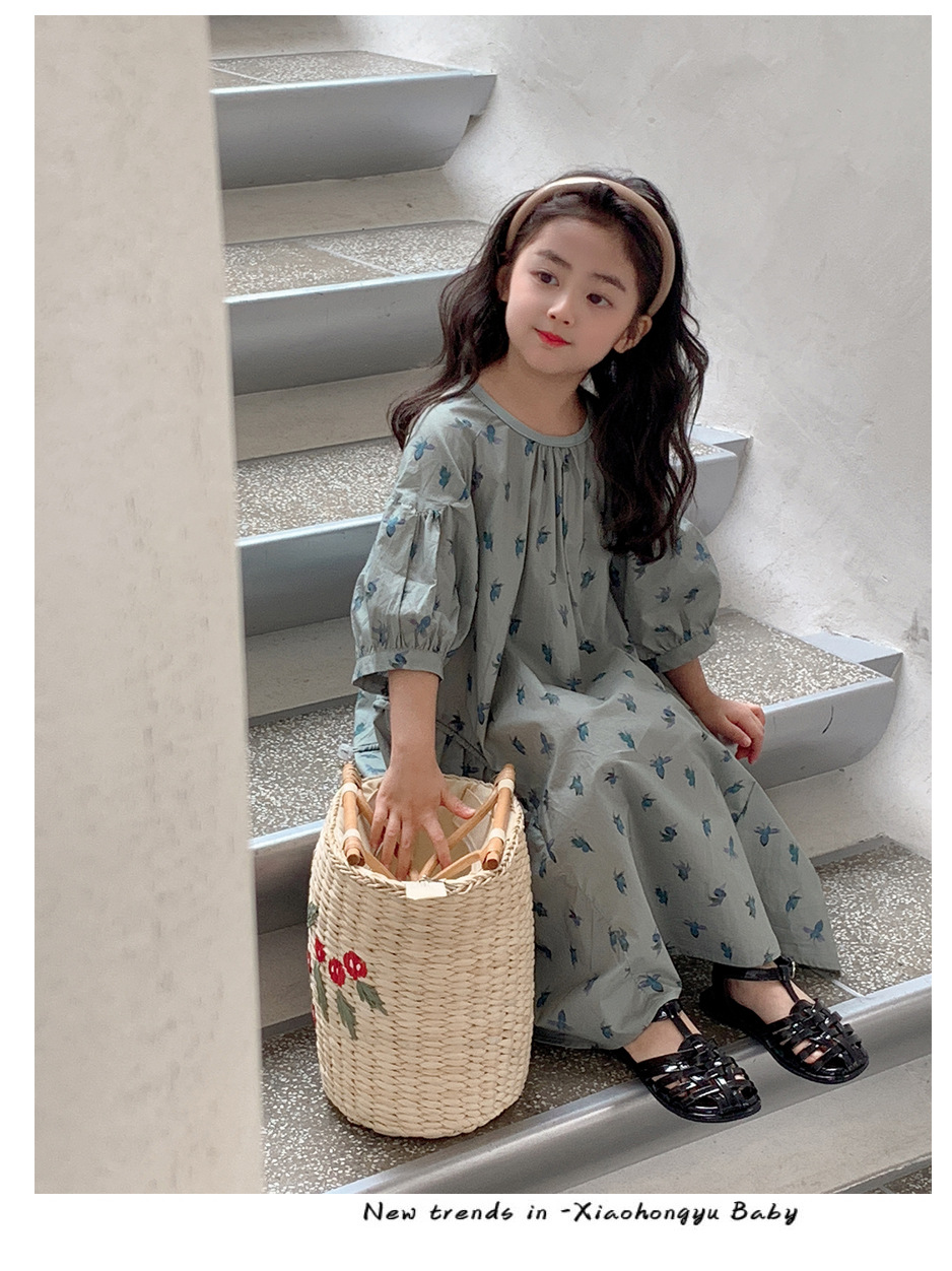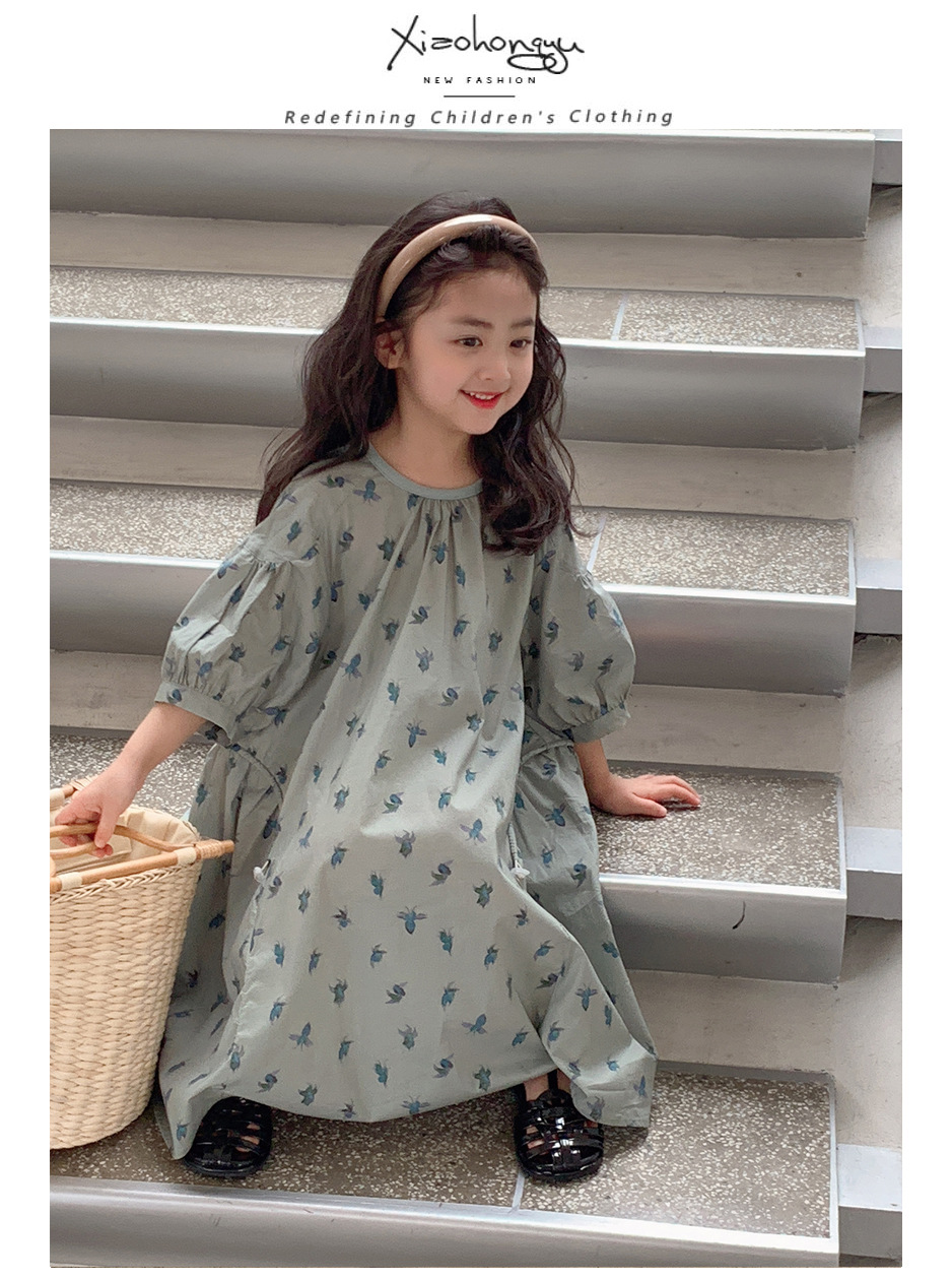 여자 여름 드레스 2025 새로운 어린이 한국 스타일 스커트 유행 여름 순수 코튼 큰 어린이 공주 드레스 여름 스타일스토어 가기