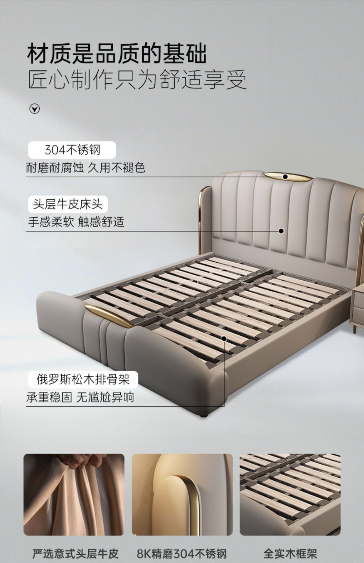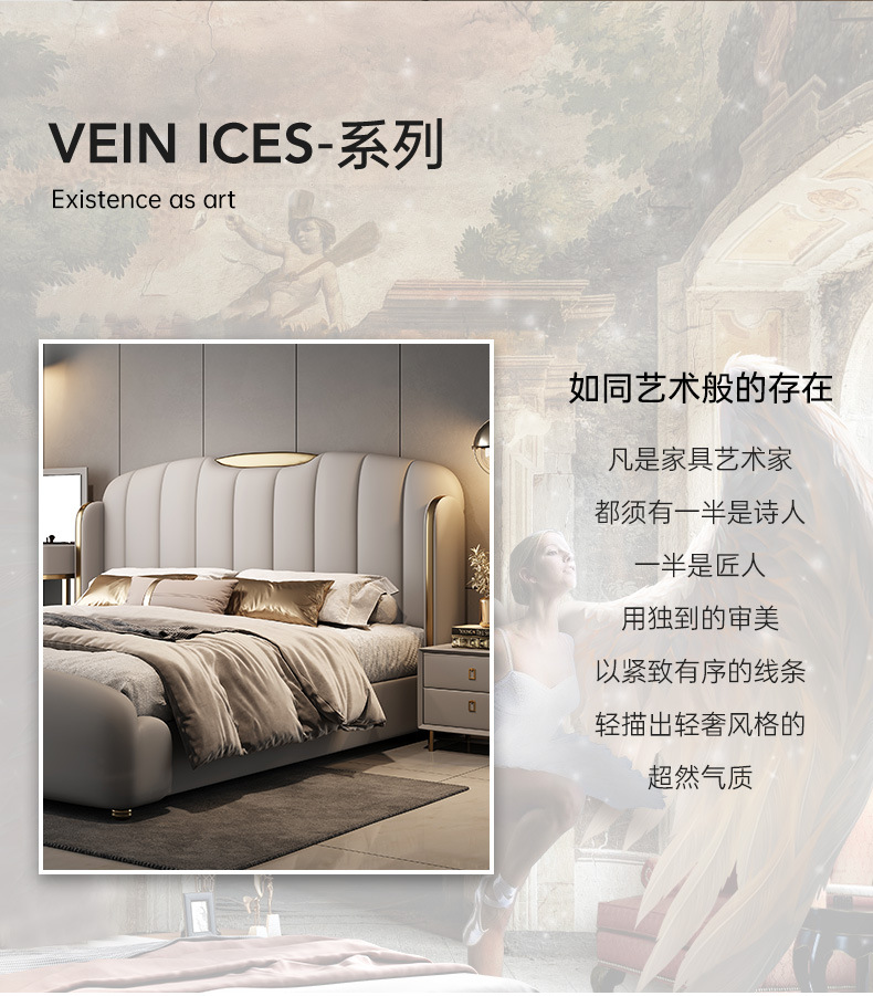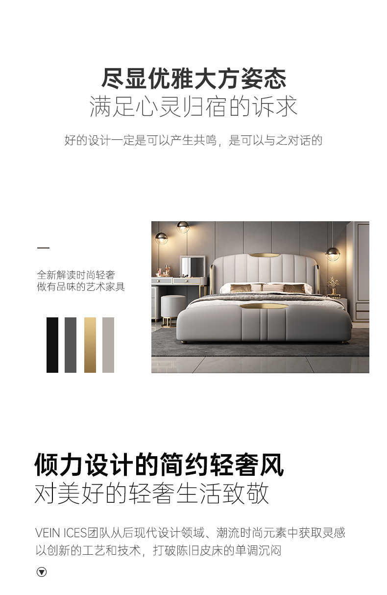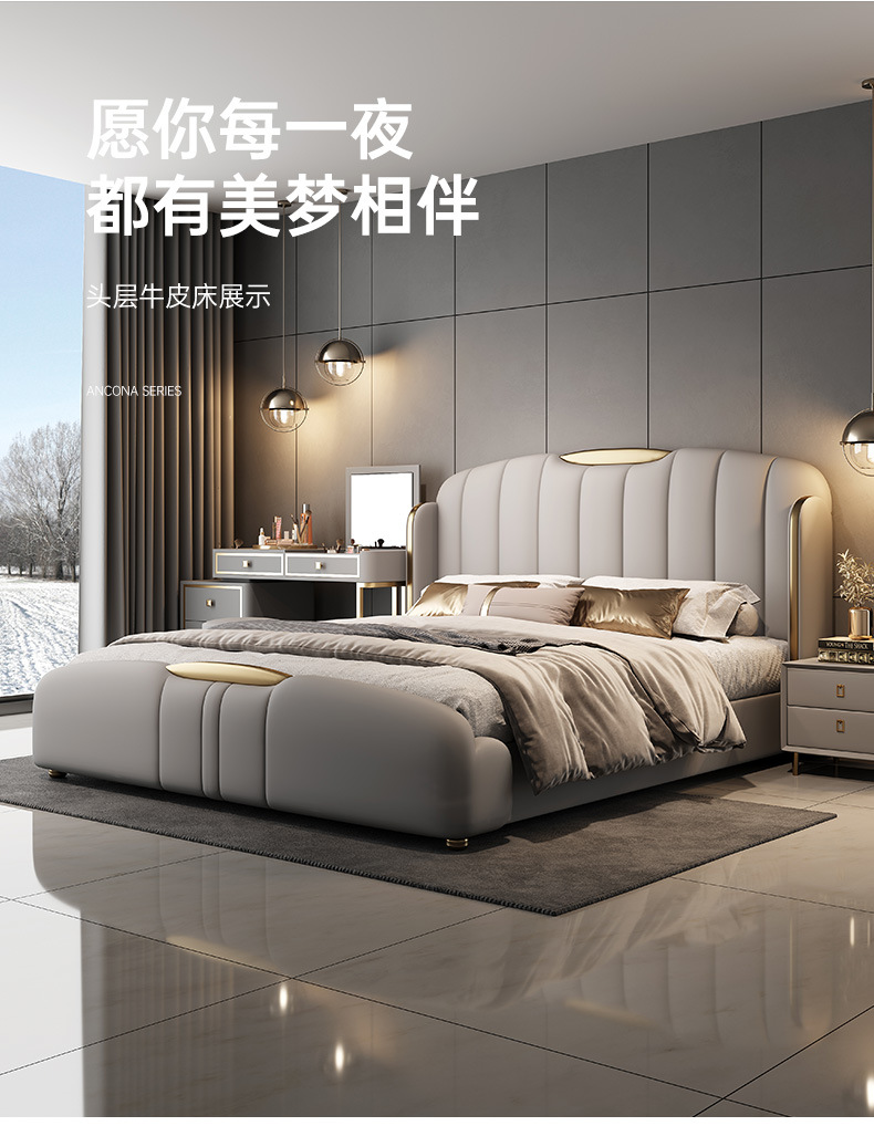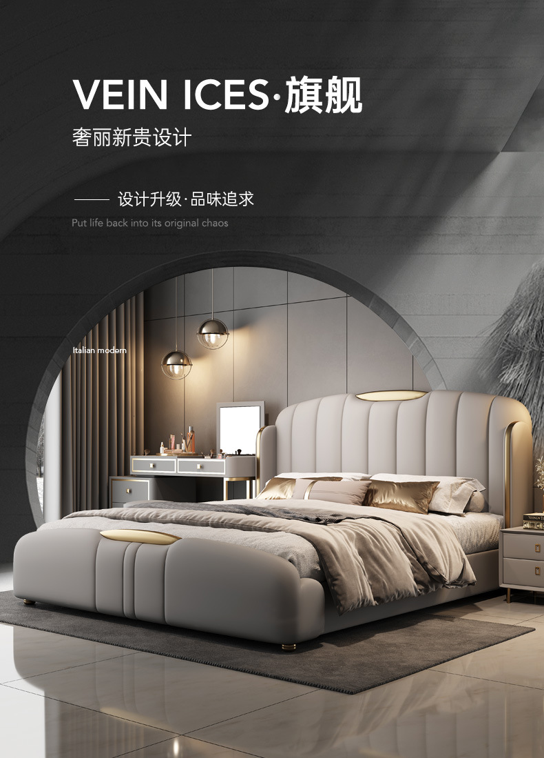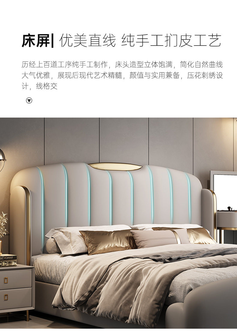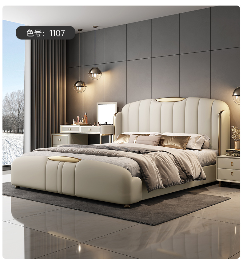 2025년 고급스러운 디자이너 럭셔리 모던 라이트 럭셔리 천연 가죽 침대 와비사비 스타일 주 침실 및 부 침실 웨딩 침대 수납형 대형 침대스토어 가기