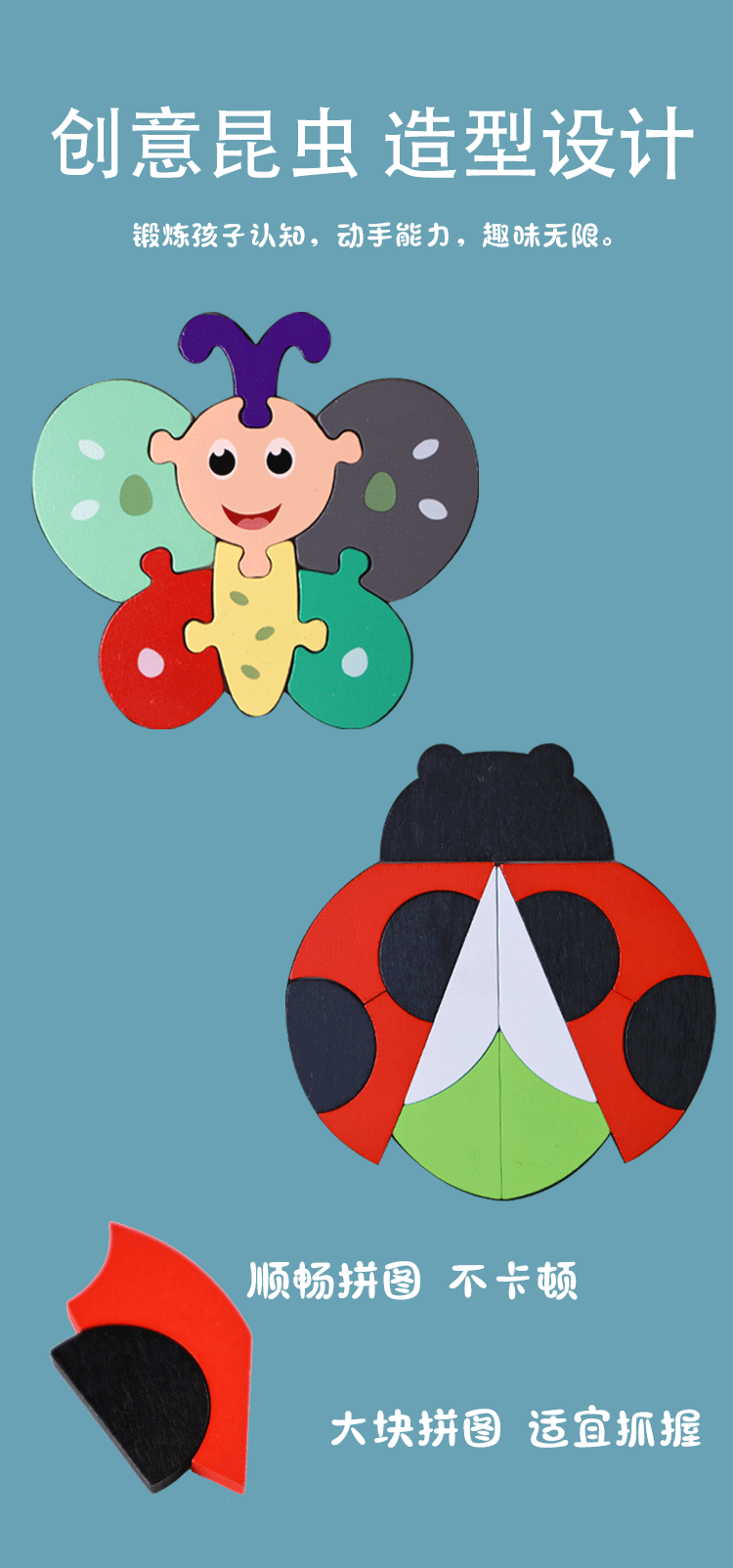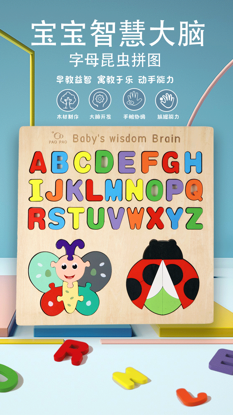 나무 장난감 아기의 똑똑한 뇌 부모-어린이 게임 편지 인지 곤충 직소 퍼즐 어린이 장난감스토어 가기