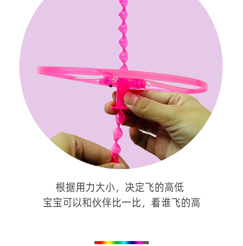 【使用方法】:把圆盘套进杆子到最底端,用小圆圈一推,飕就发射啦,根据用力大小决定飞的高低,一般能飞六七米高,爸爸妈妈和宝宝,小伙伴比比赛,看看谁飞的高。(操作简单 年龄大小 均适合)