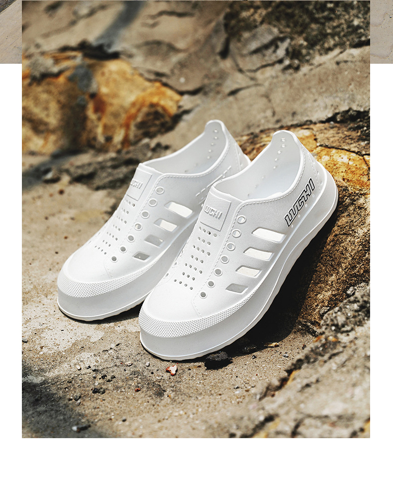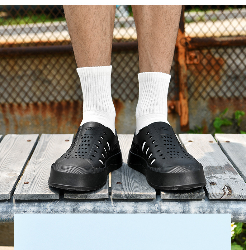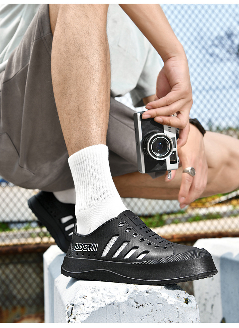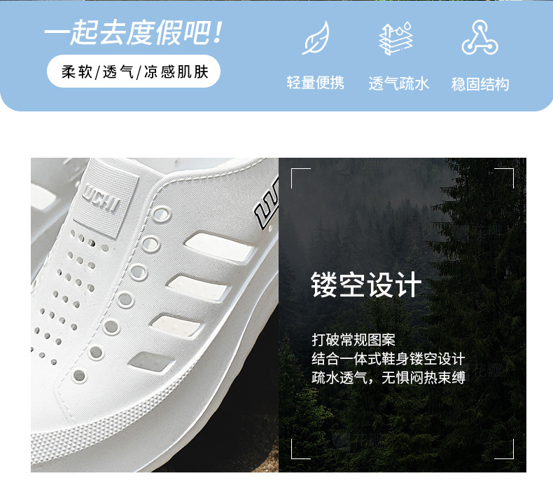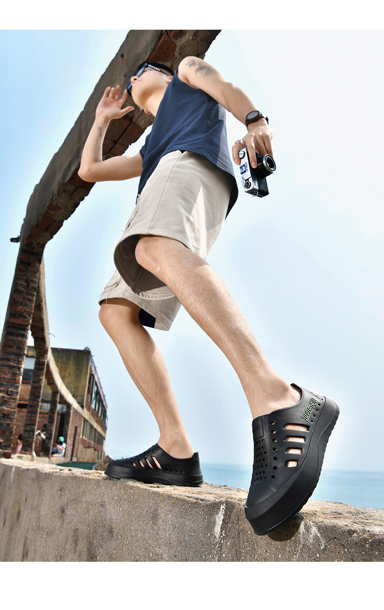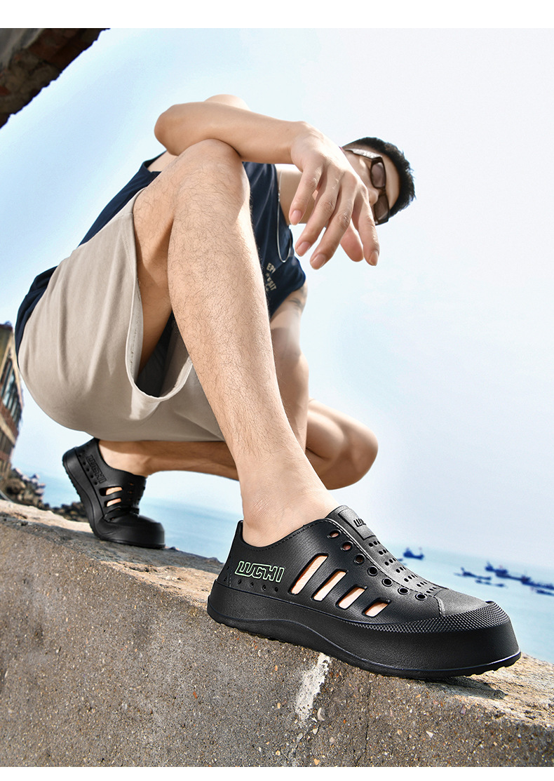 여름 구멍 신발 새로운 2024 두꺼운 밑창 미끄럼 방지 방수 샌들 야외 착용 바오터우 비치 신발 도매스토어 가기