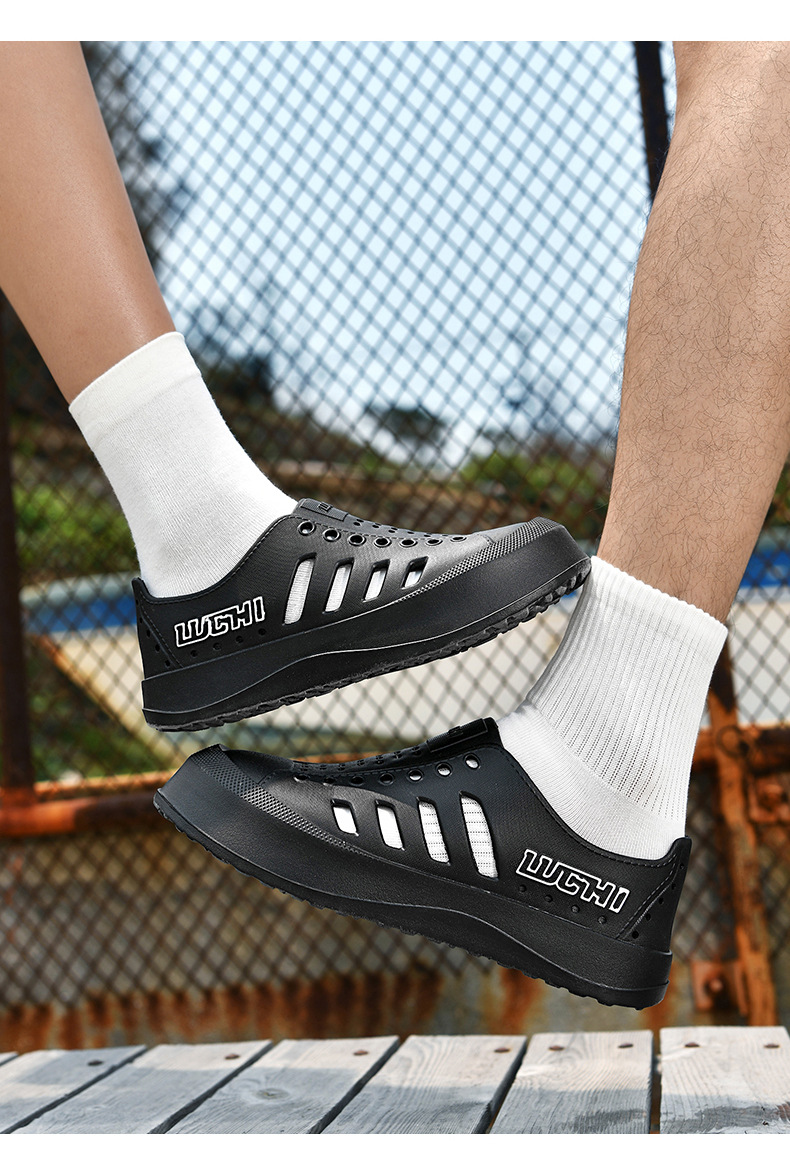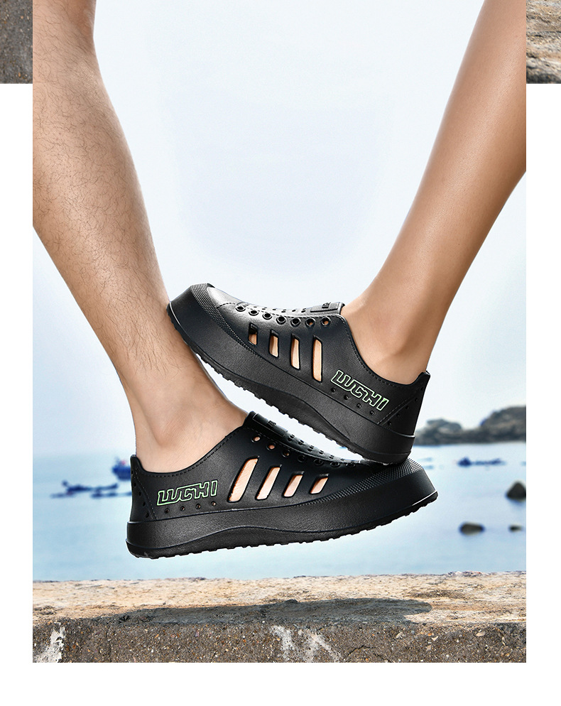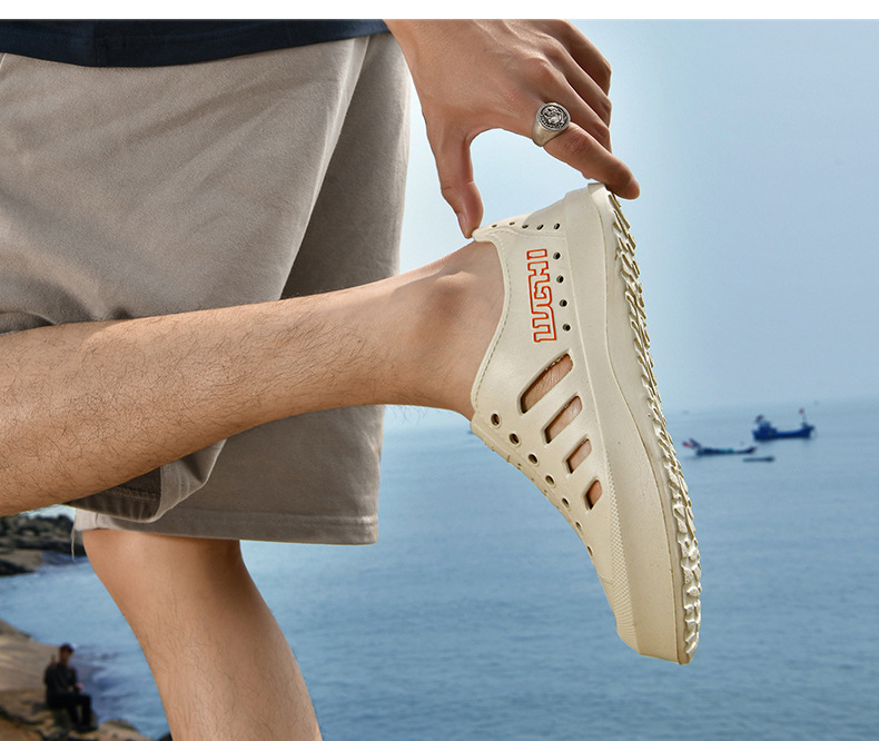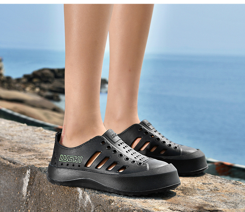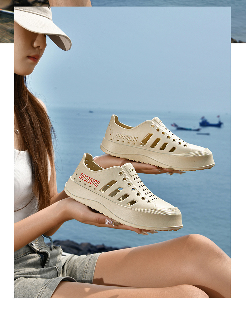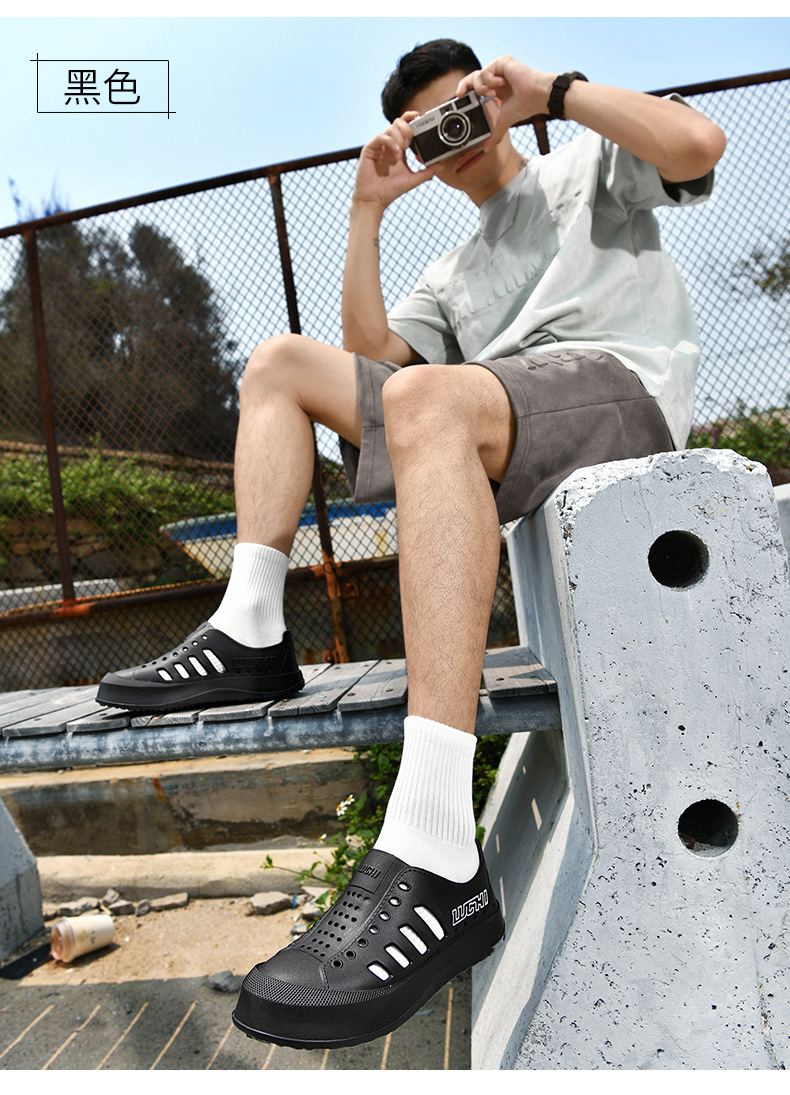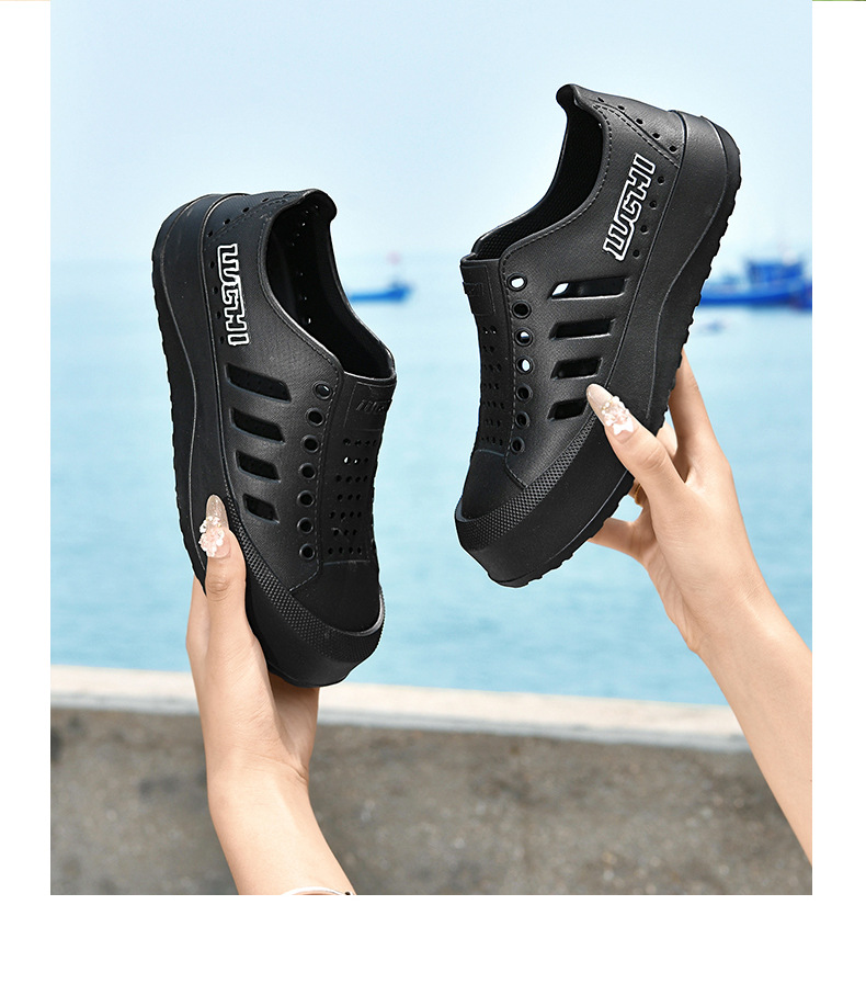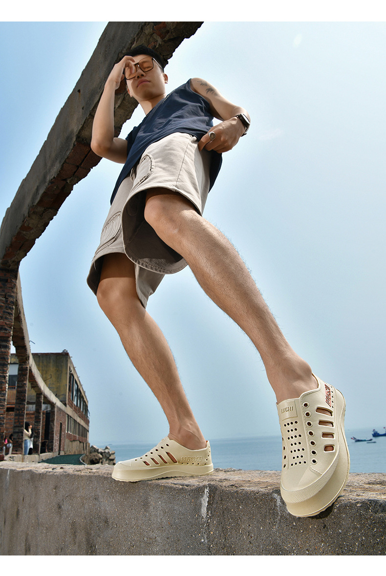 여름 구멍 신발 새로운 2024 두꺼운 밑창 미끄럼 방지 방수 샌들 야외 착용 바오터우 비치 신발 도매