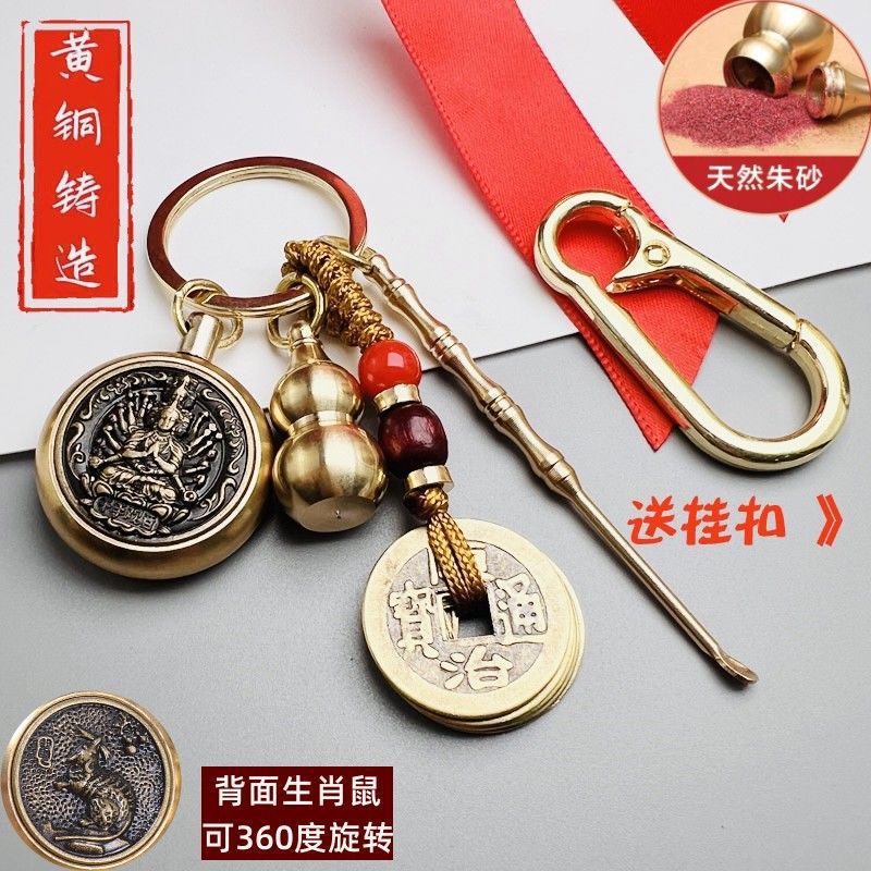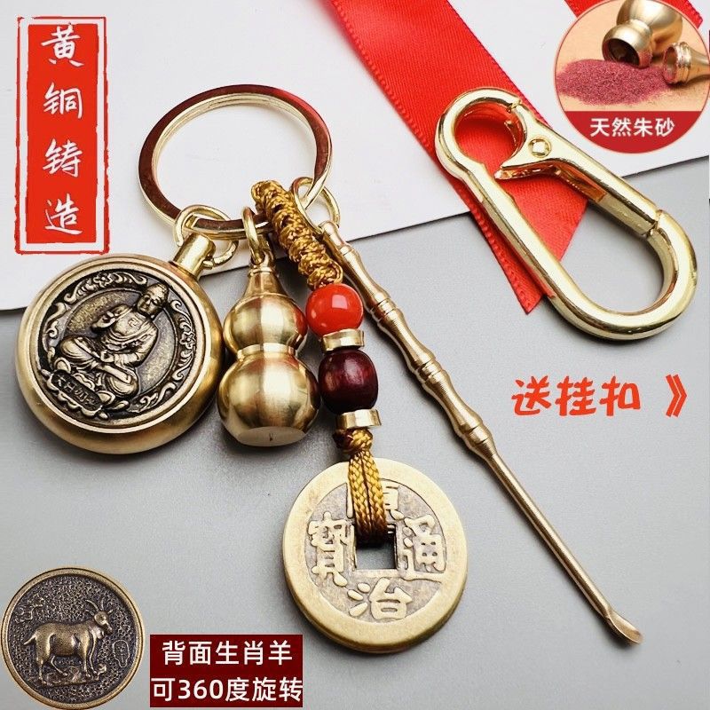순수한 황동 조디악 가디언 키 펜던트 귀 숟가락 8 개 벤밍포 조롱박 자동차 교수형 펜던트
