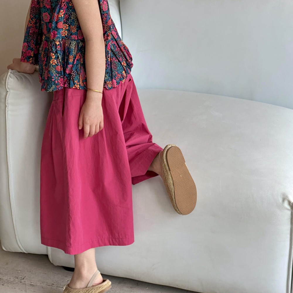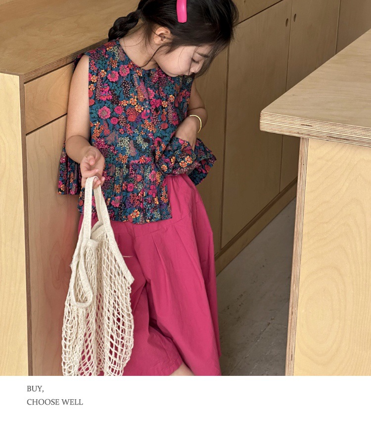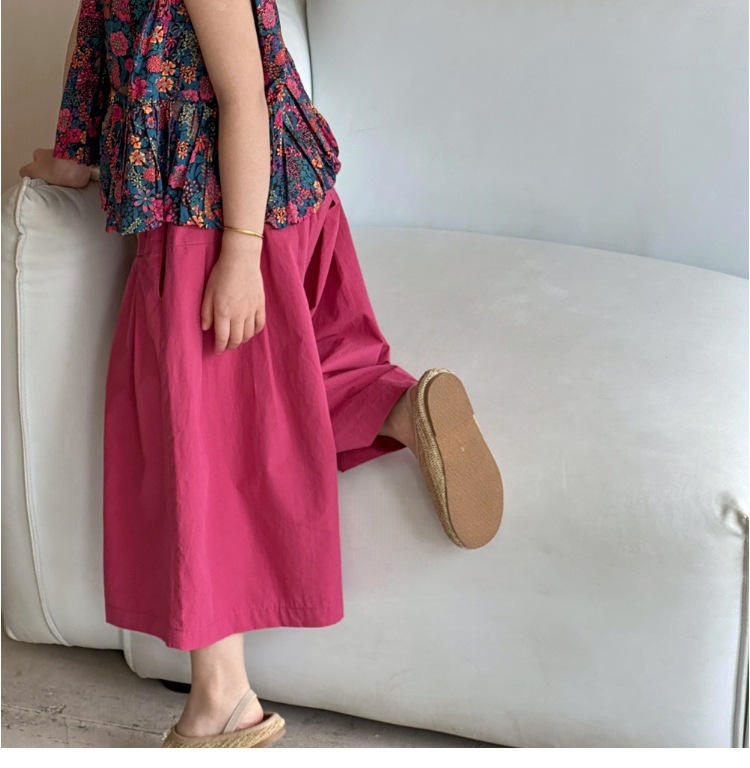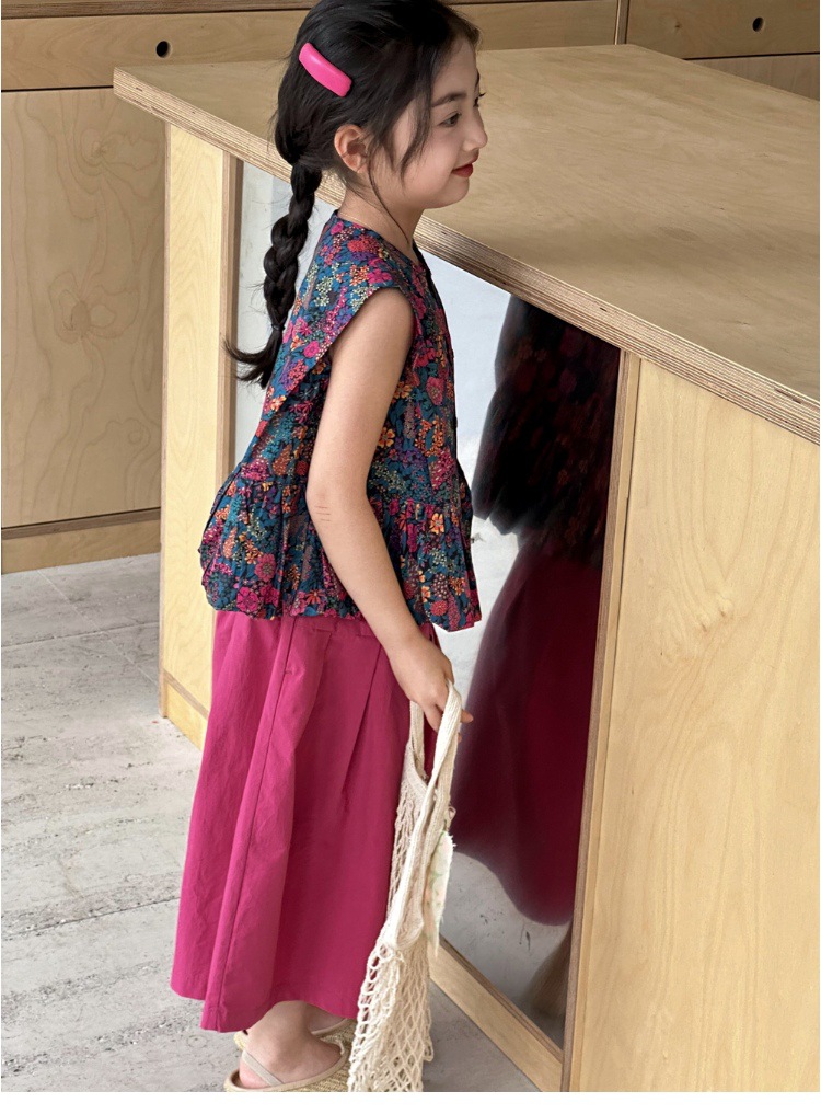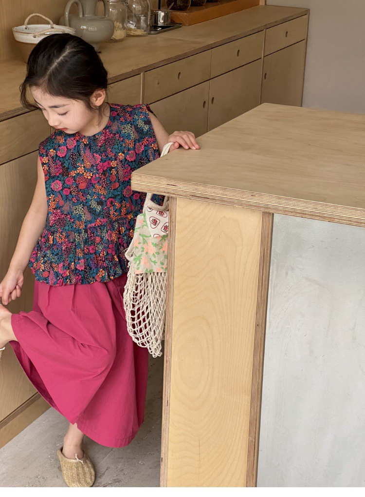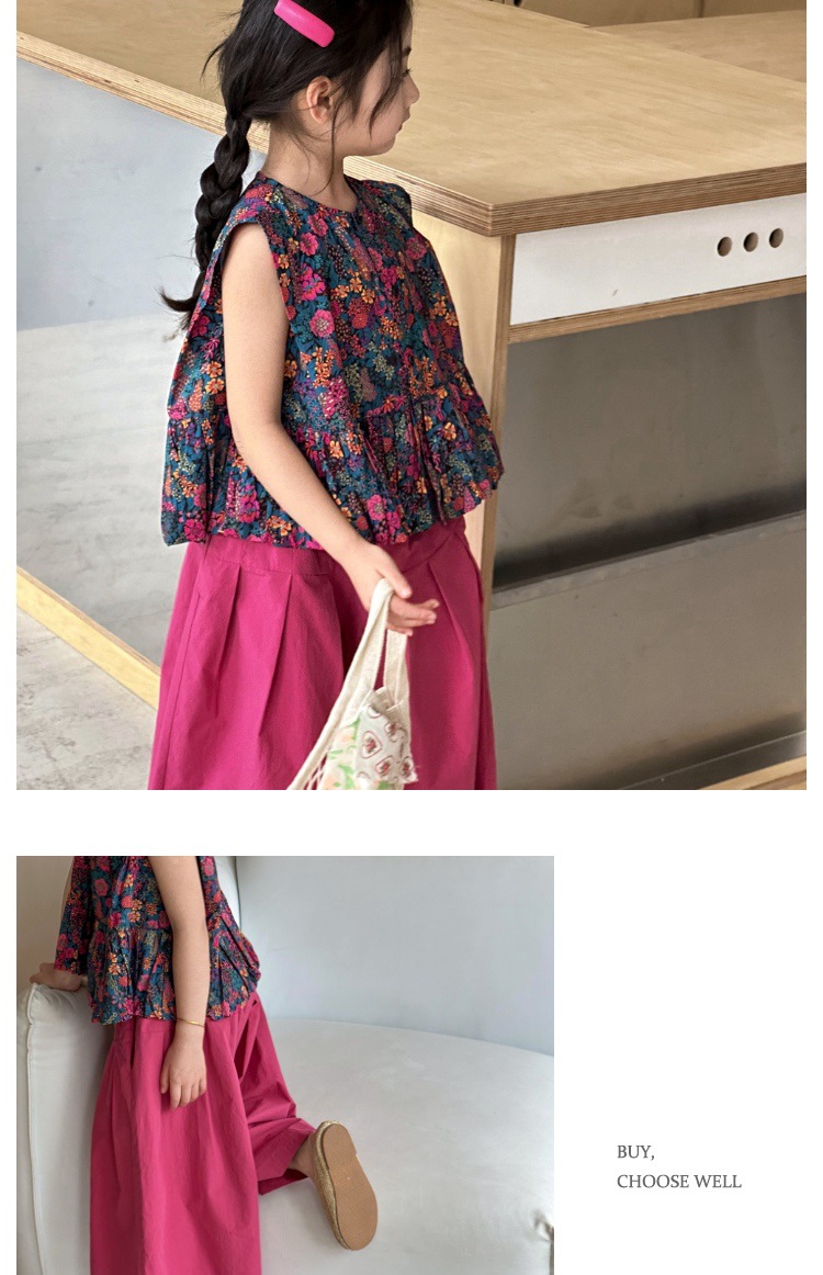 소녀의 여름 세트 2025 새로운 스타일 소녀의 민소매 꽃 셔츠 여름 어린이 넓은 다리 바지 투피스 세트스토어 가기
