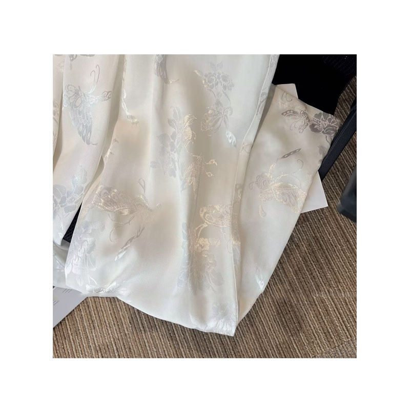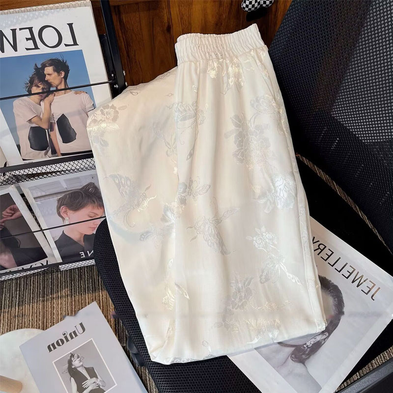 화이트 내셔널 스타일 새틴 자카드 넓은 다리 바지 여성 여름 2024 새로운 중국 스타일 아이스 실크 멋진 바지 슬림 핏스토어 가기