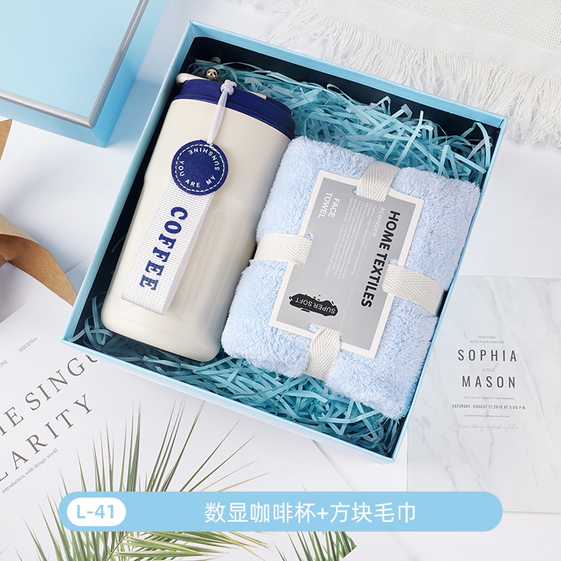 • 커피 컵 사각형 수건 자기 충전 보물 (파란색 상자