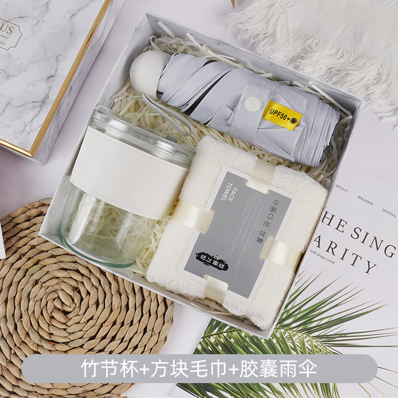 • 대나무 컵 스퀘어 타월 캡슐 우산 (흰색 상자)