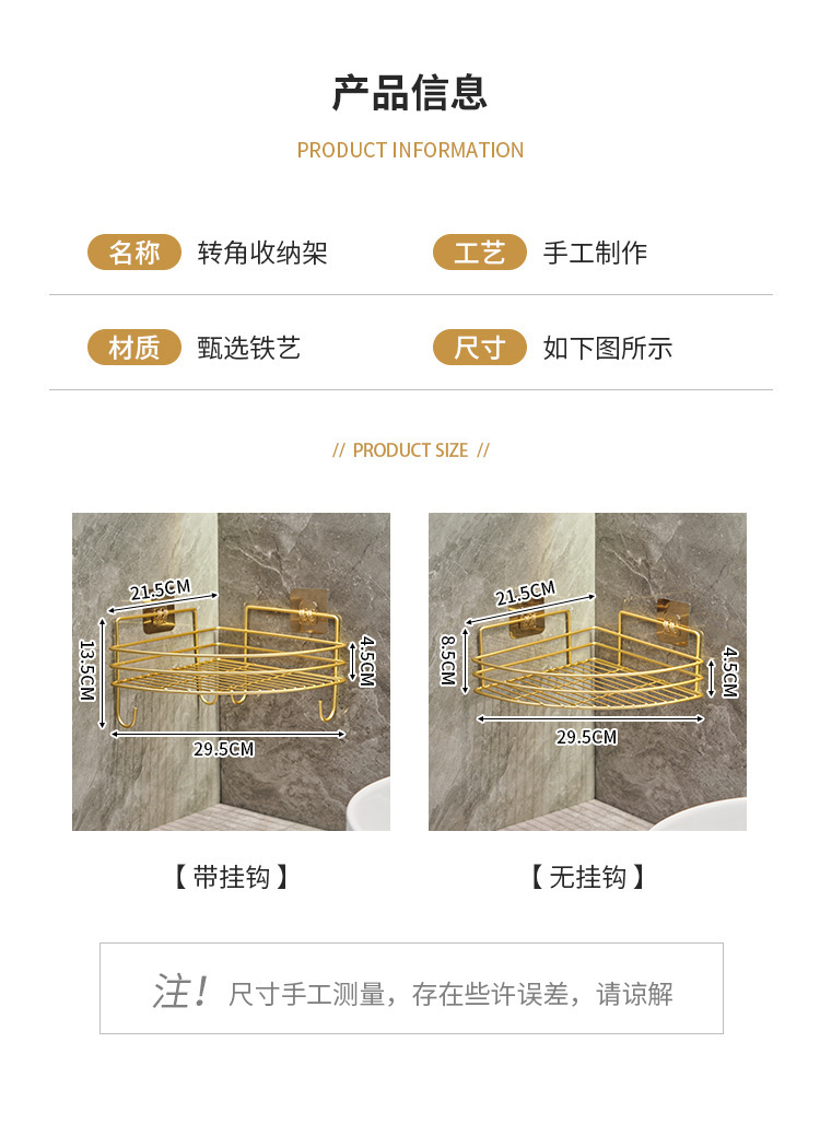 욕실 보관 랙 욕실 벽걸이 코너 랙 펀치 프리 더블 레이어 욕실 샤워 룸 보관 랙 두껍게스토어 가기