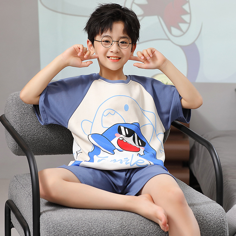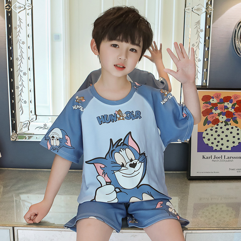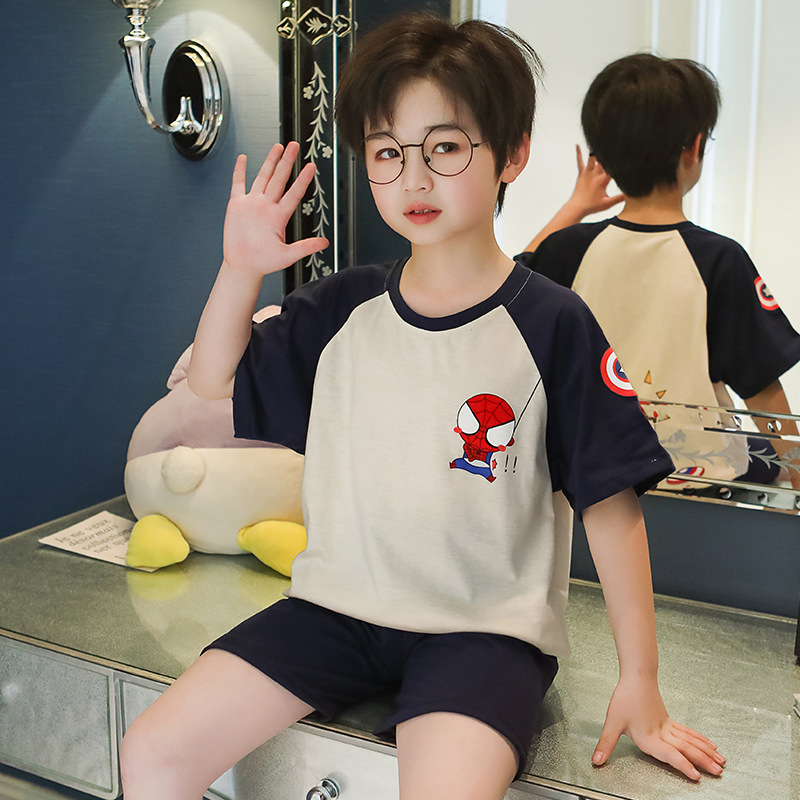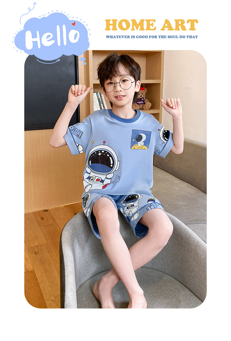 여름 어린이 잠옷 소년의 반팔 얇은 만화 작은 소년의 큰 소년의 겉옷 홈 에어컨 세트스토어 가기