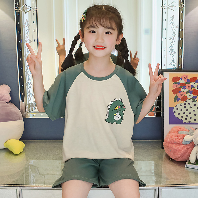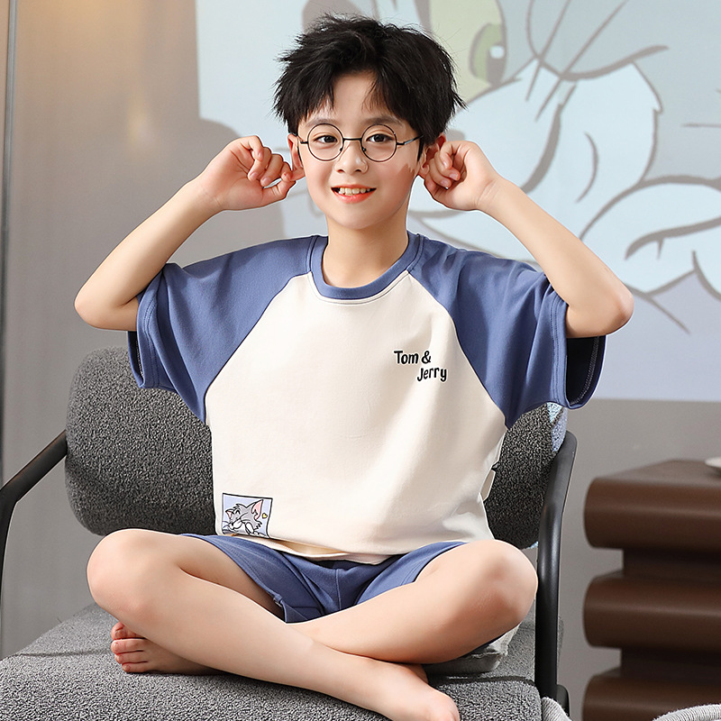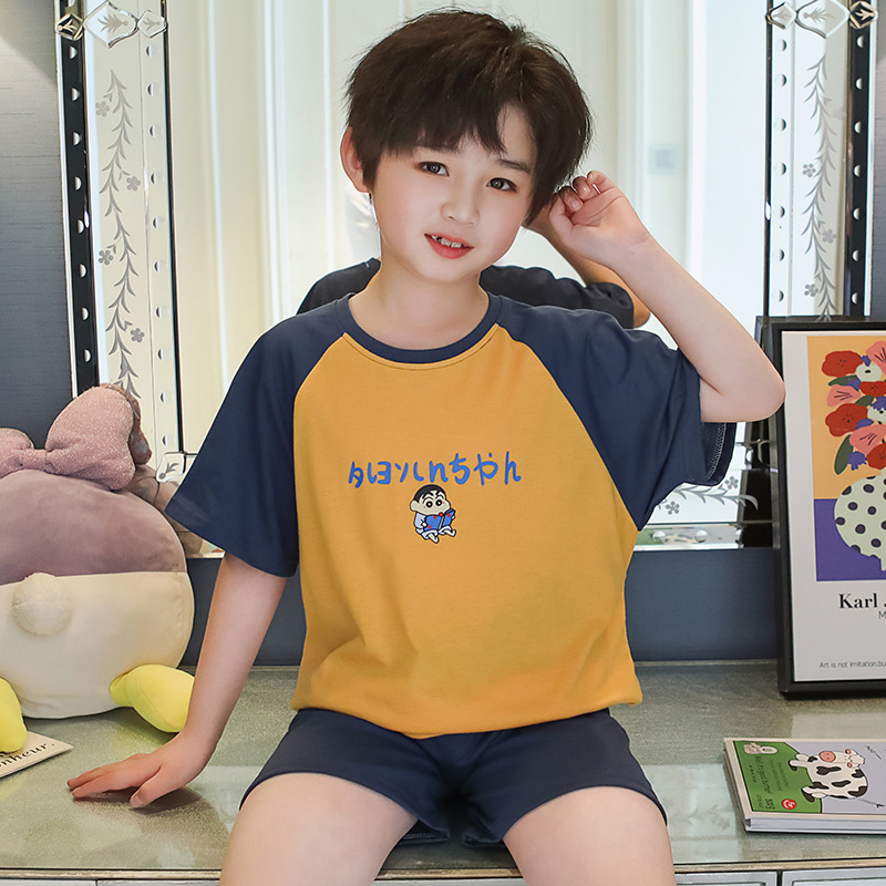 여름 어린이 잠옷 소년의 반팔 얇은 만화 작은 소년의 큰 소년의 겉옷 홈 에어컨 세트