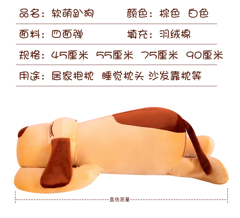 국경 간 새로운 누워 개 봉제 장난감 긴 베개 강아지 인형 어린이 인형 누워있는 동물 도매스토어 가기