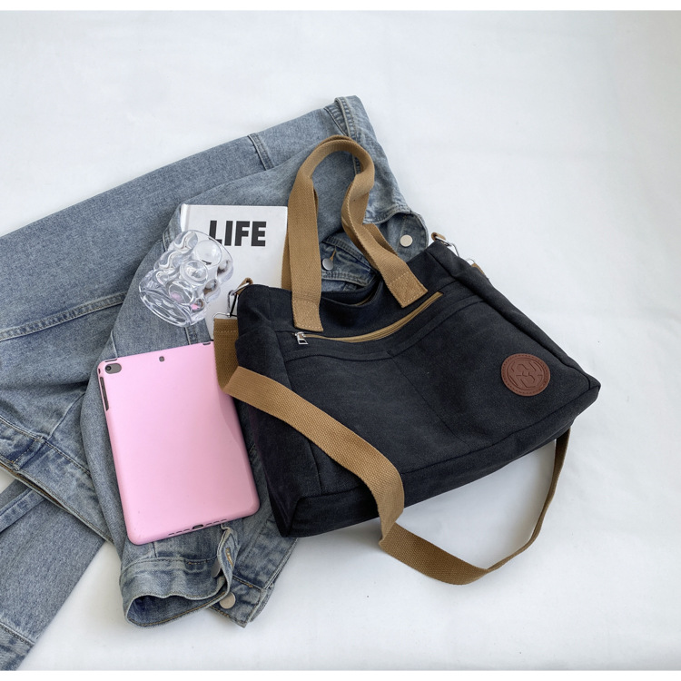 대용량 캔버스 작업 가방 여성의 2024 새로운 틈새 올 매치 어깨 휴대용 쇼핑백 토트 백스토어 가기