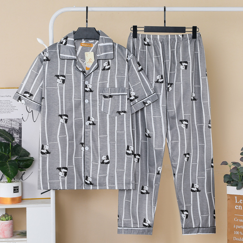 2-7 파자마 남자 여름 코튼 카디건 반팔 바지 홈 옷 남자 여름 여름 얇은 세트스토어 가기