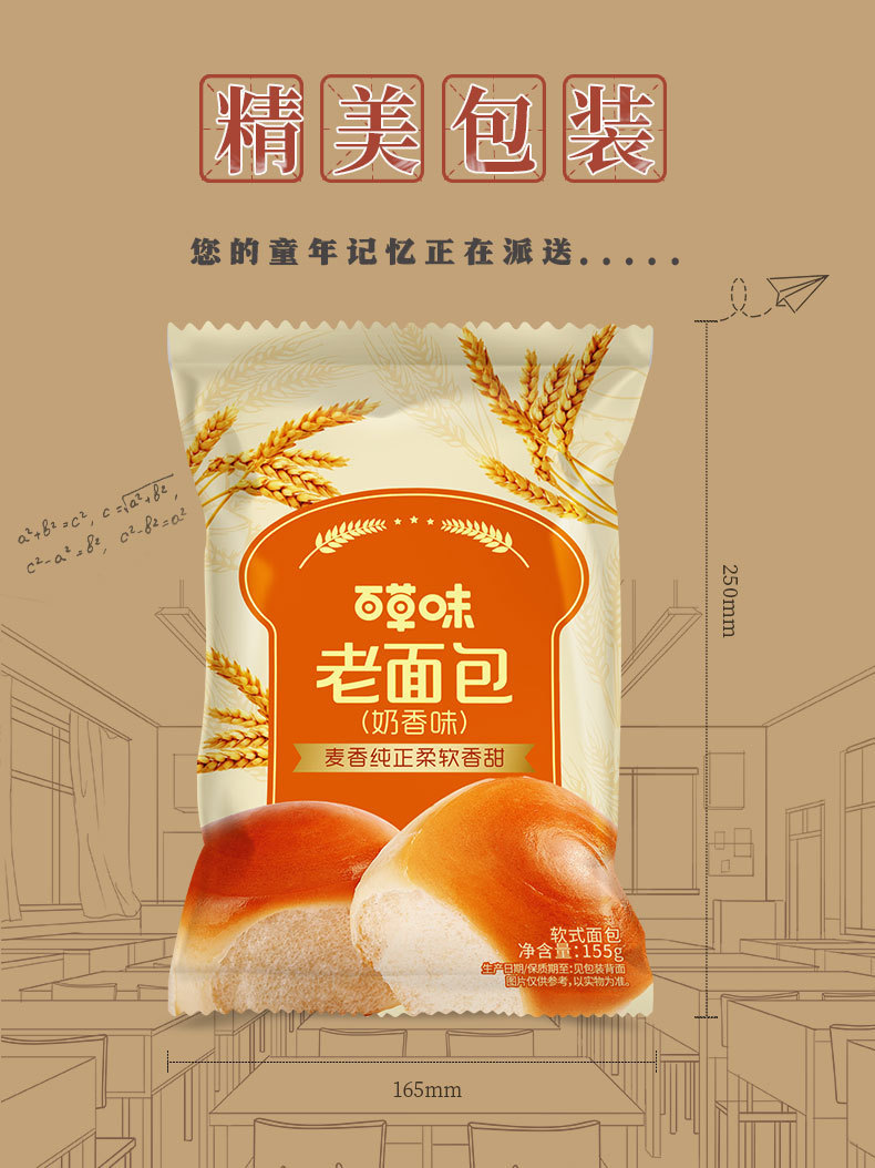 Baicaowei 오래된 빵 155g 아침 페이스트리 디저트 사무실 간식 기숙사 간식 식사 대체 부드러운 빵