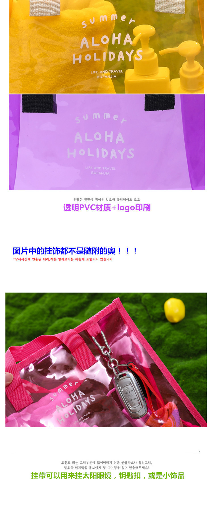 패션 PVC 투명 수영 가방 비치 백 피트니스 캐주얼 핸드백 휴대용 의류 보관 가방 여행 핸드백