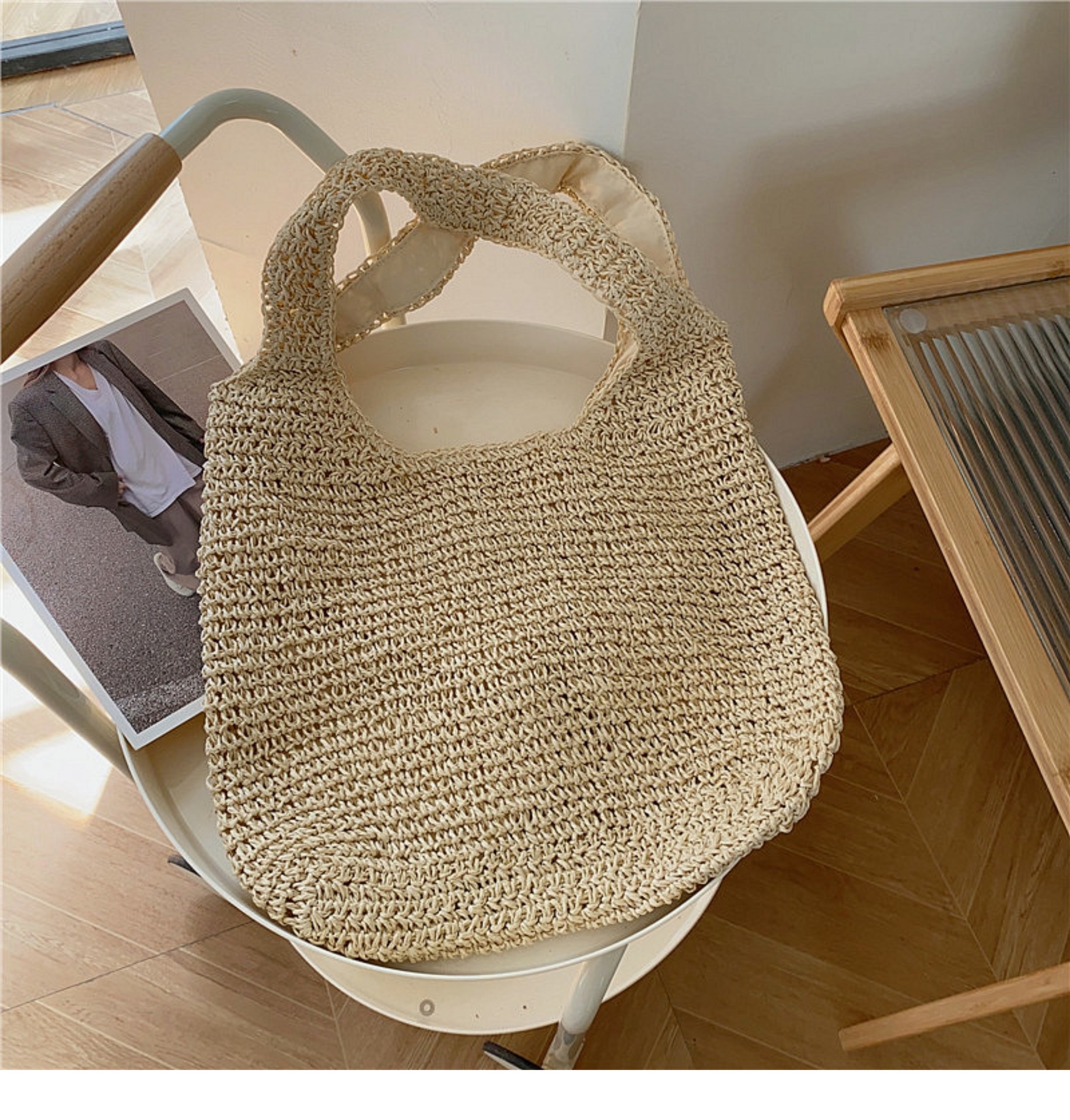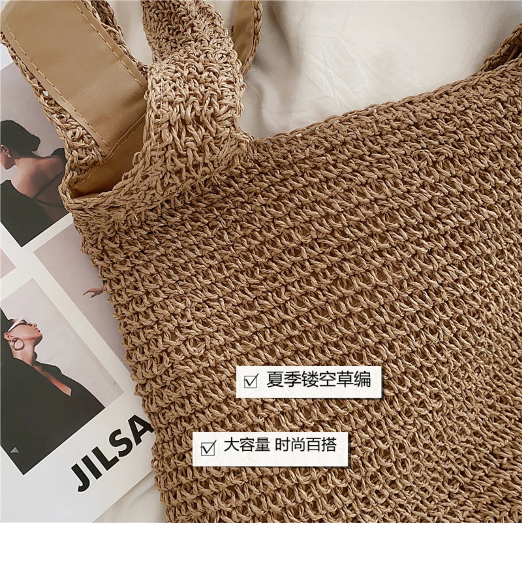 2024春夏爆款大容量女包包单肩包镂空草编包斜跨编织包沙滩度假包
