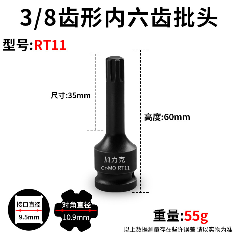 3/8 Zhongfei 공기 대포 전기 렌치 결합 된 회전 슬리브 6 이빨 꽃 각도 스트레이트 홈 이빨 RT8 배치 헤드