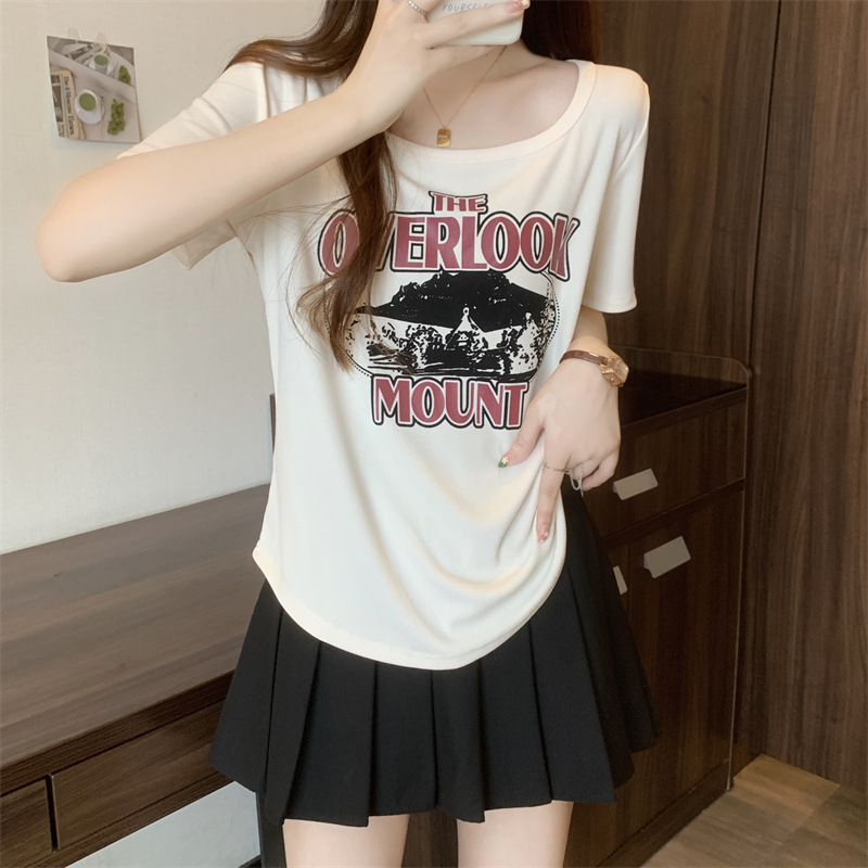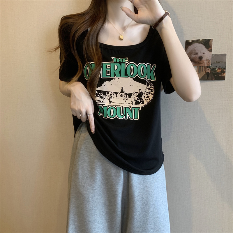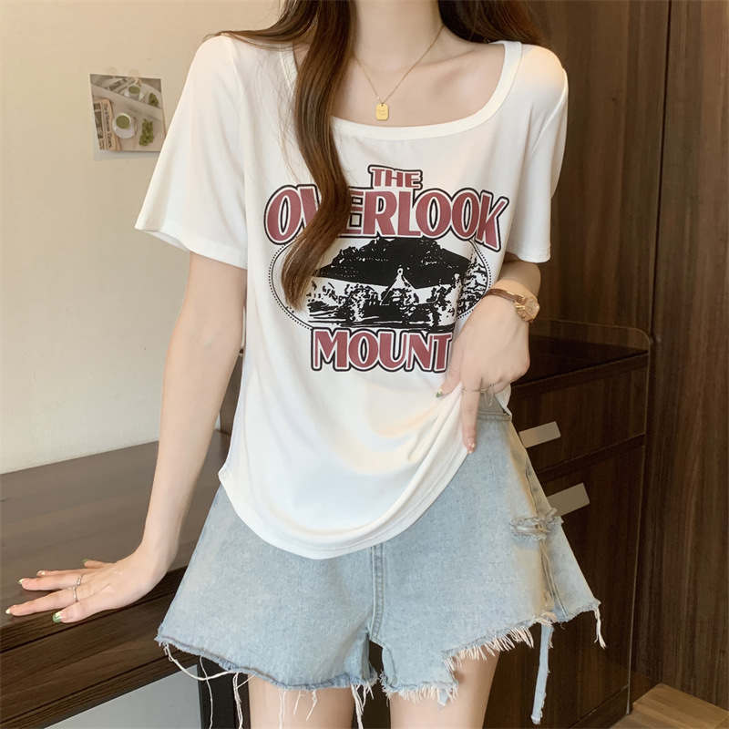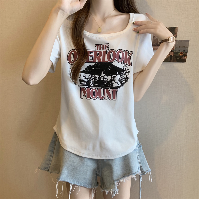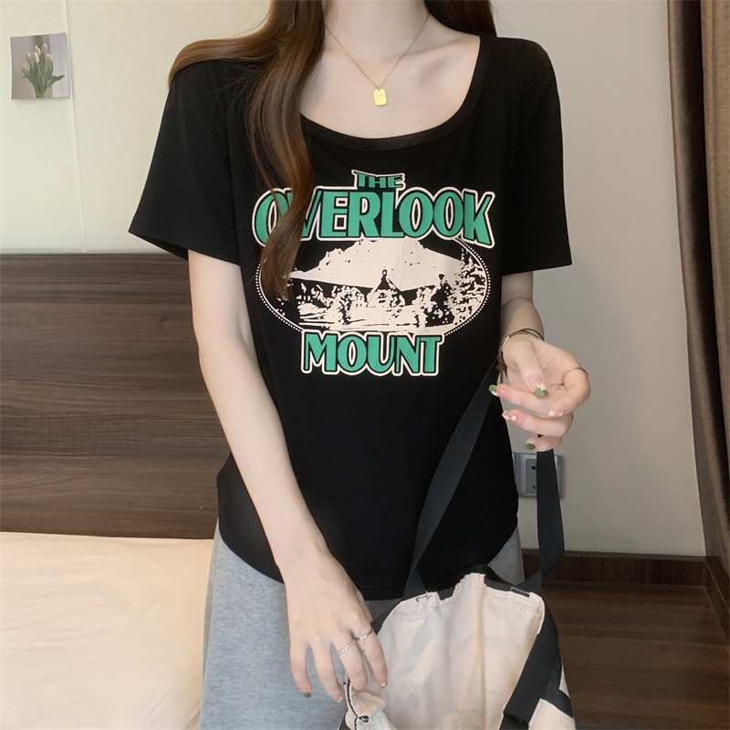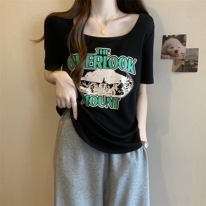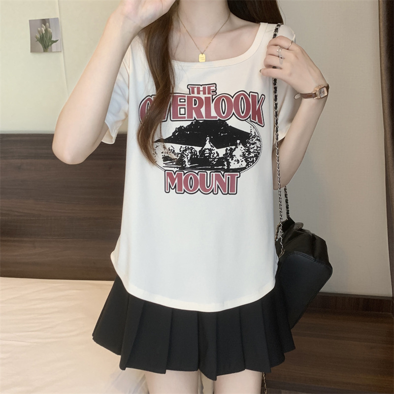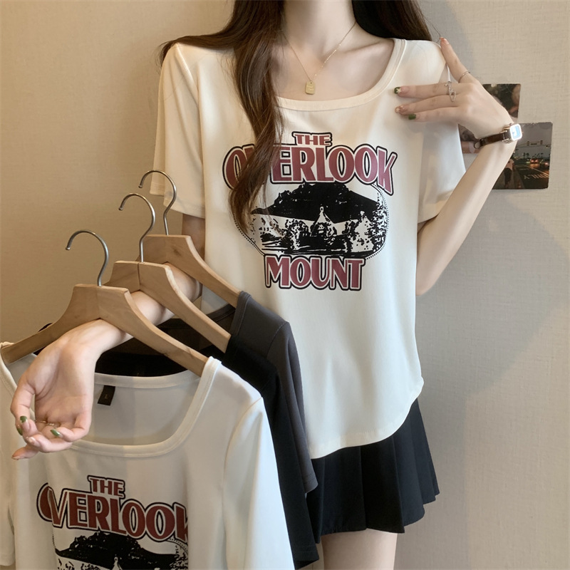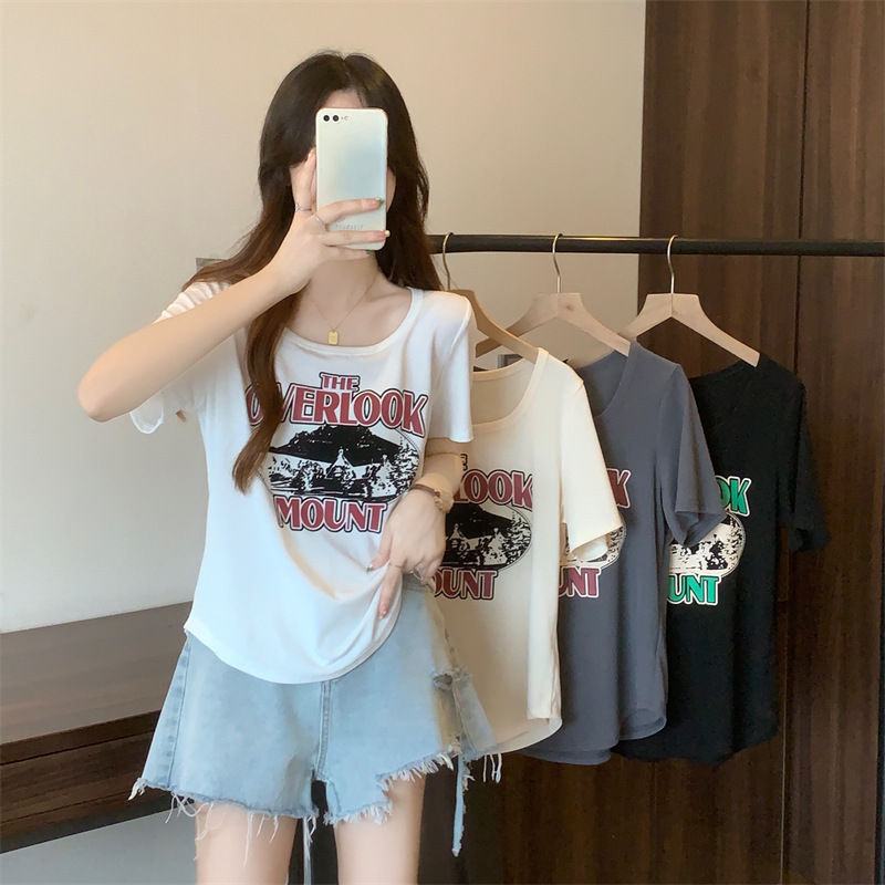 유럽 대형 여성용 반팔 티셔츠 여성용 통통한 여성 디자인 센스 틈새 슬림 핏 슬림 핏 미트 커버 올 매치 탑스토어 가기