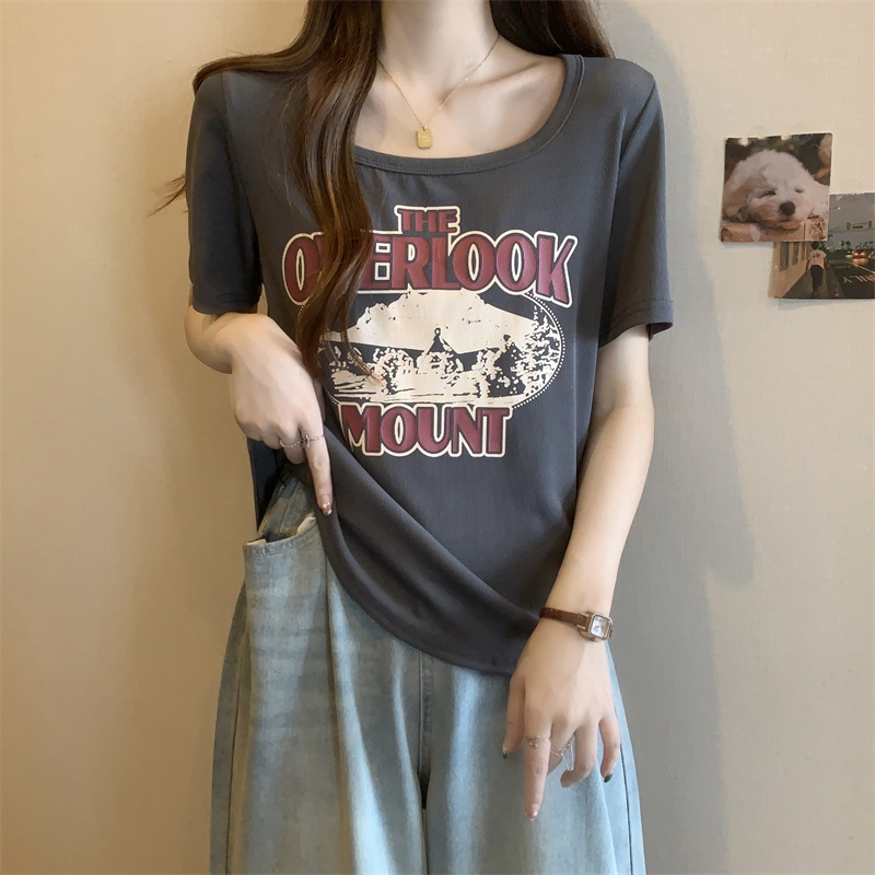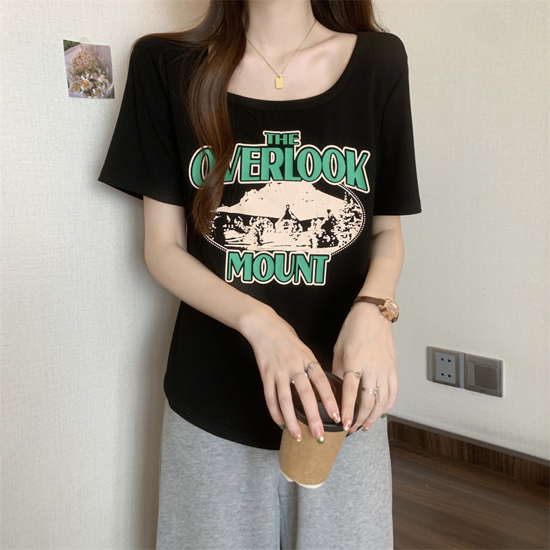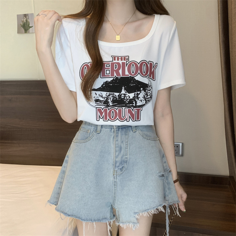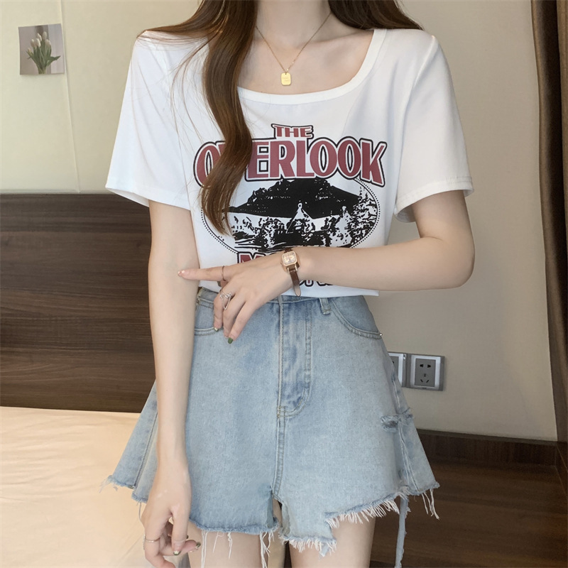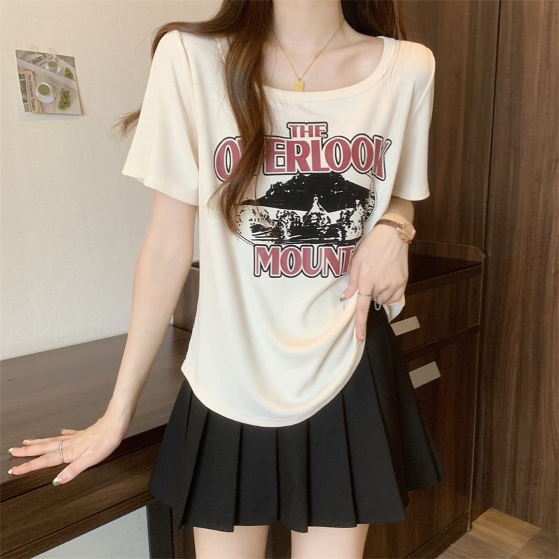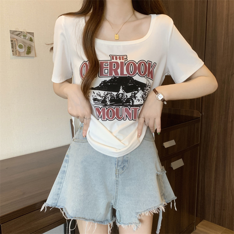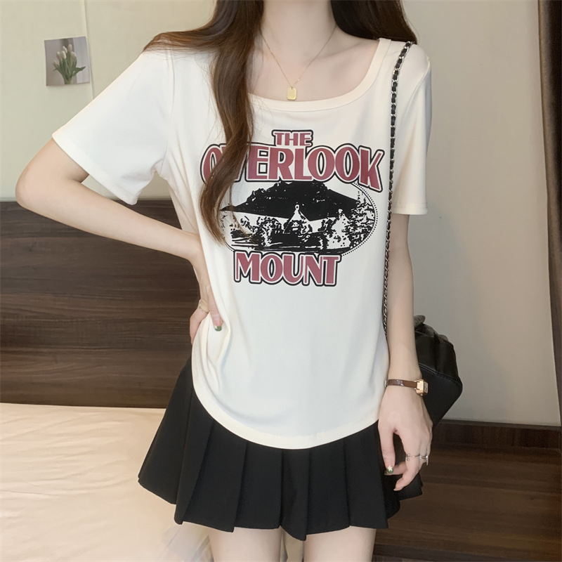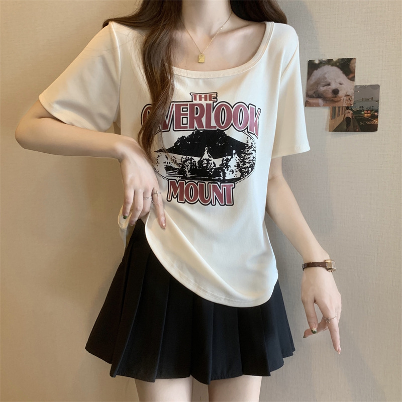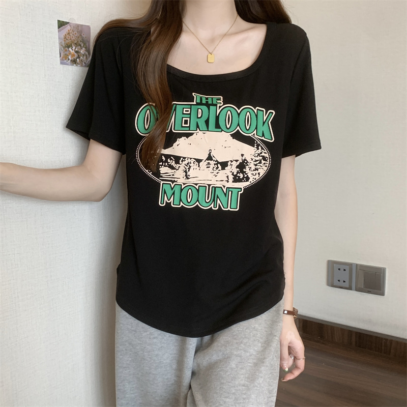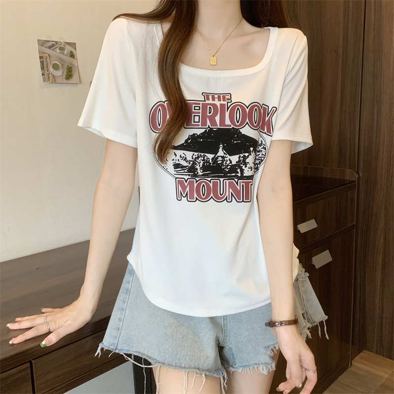 유럽 대형 여성용 반팔 티셔츠 여성용 통통한 여성 디자인 센스 틈새 슬림 핏 슬림 핏 미트 커버 올 매치 탑스토어 가기