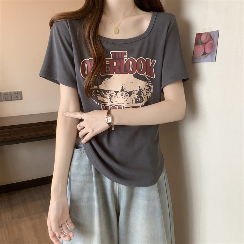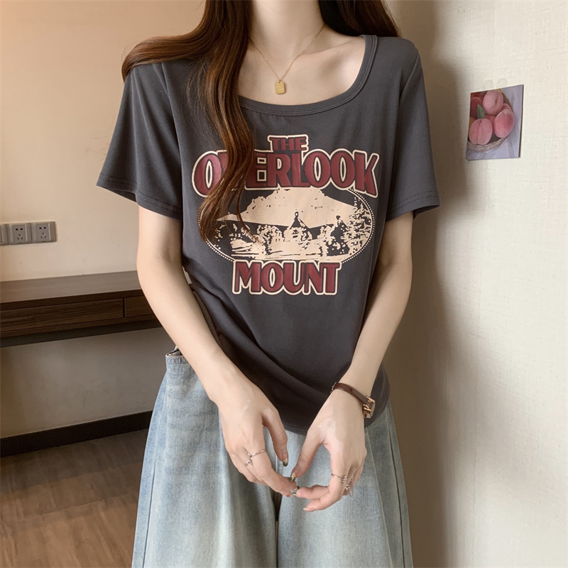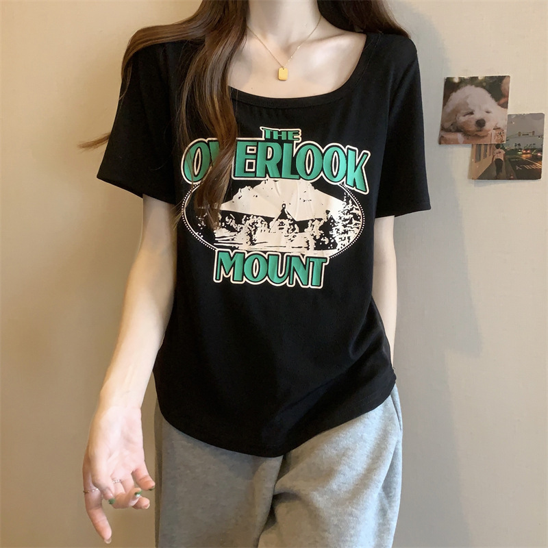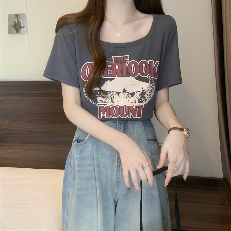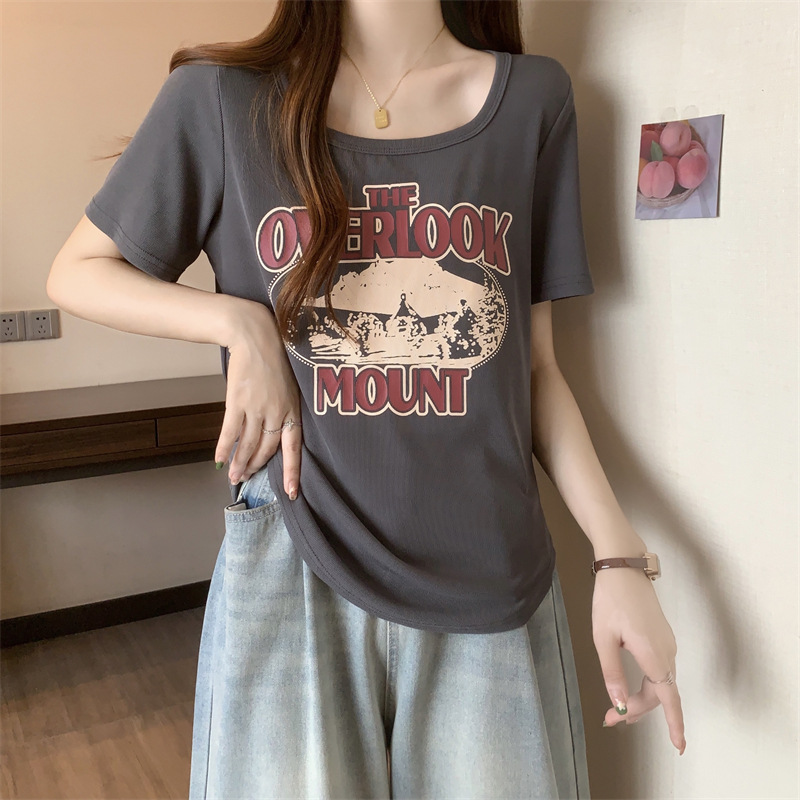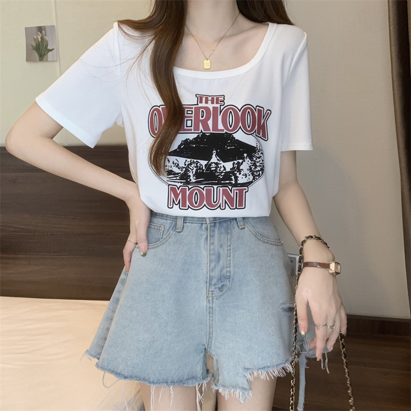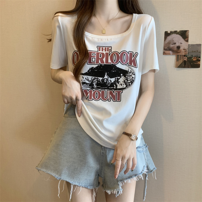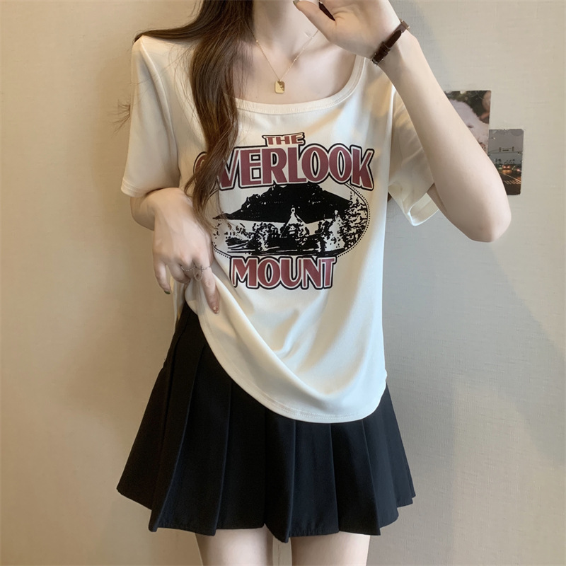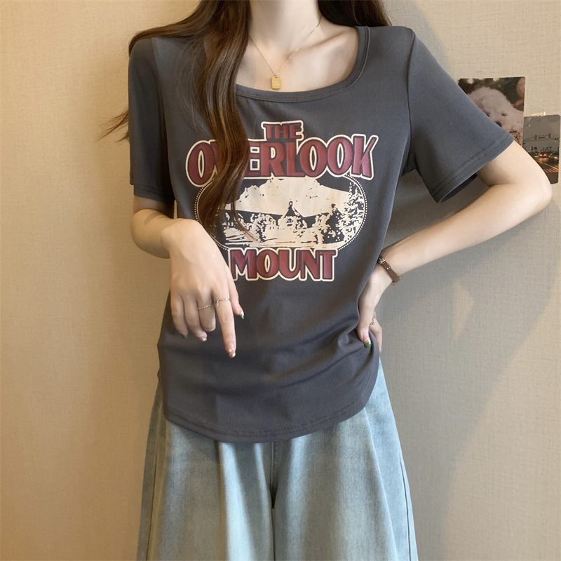 유럽 대형 여성용 반팔 티셔츠 여성용 통통한 여성 디자인 센스 틈새 슬림 핏 슬림 핏 미트 커버 올 매치 탑스토어 가기