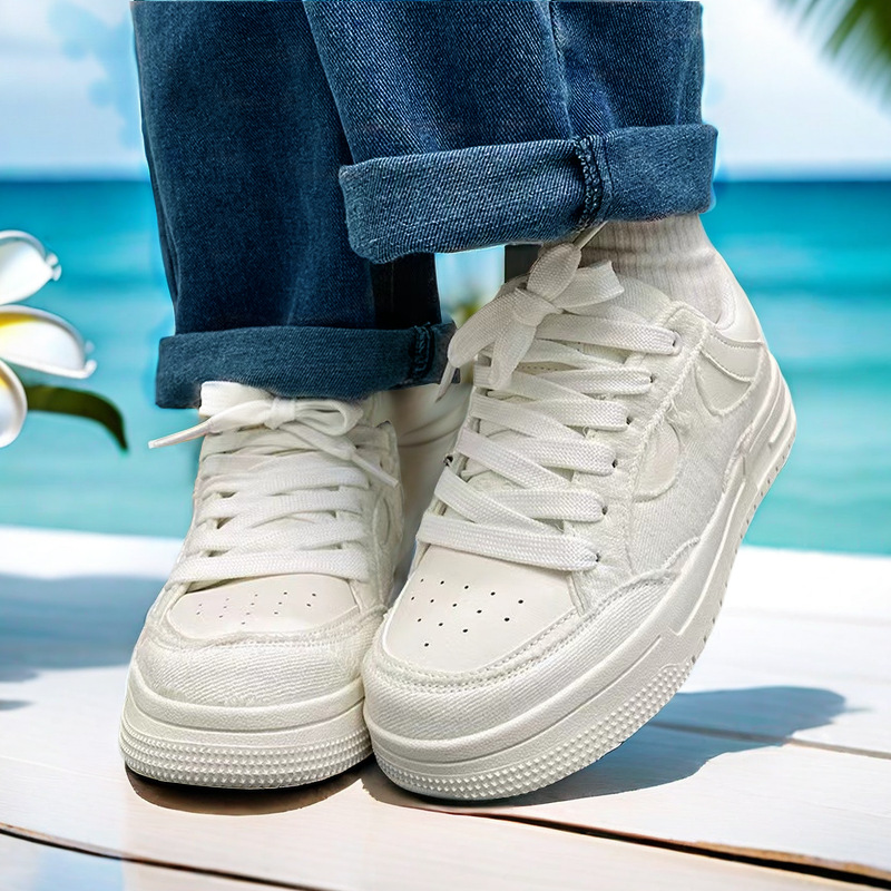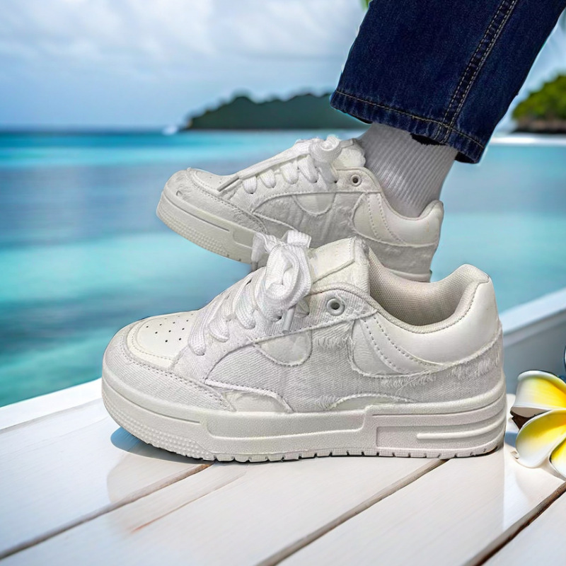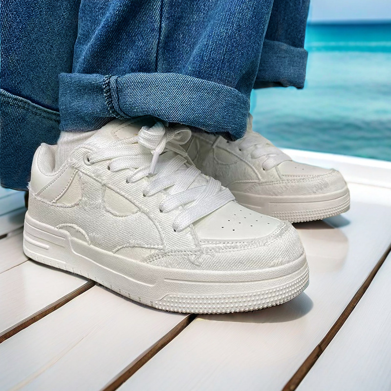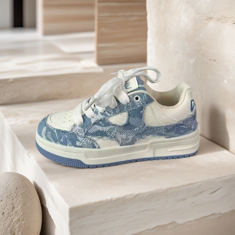 새로운 Ins 학생 데님 블루 빈티지 두꺼운 단독 증가 캐주얼 빵 신발 애인을위한 통기성 스포츠 운동화
