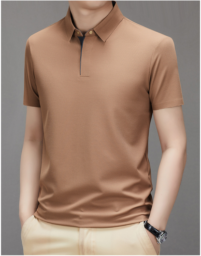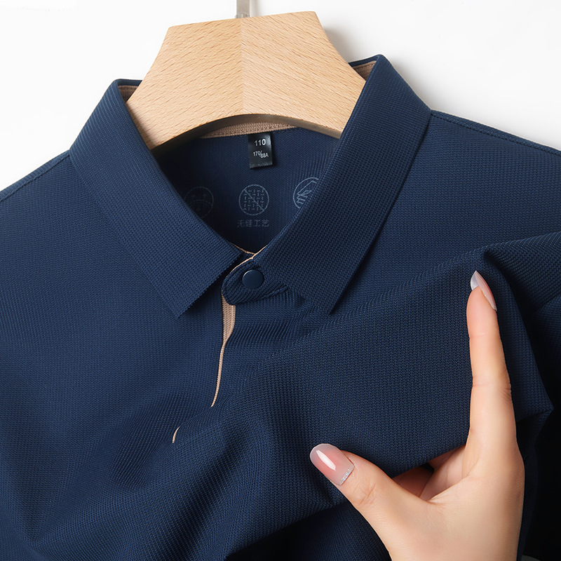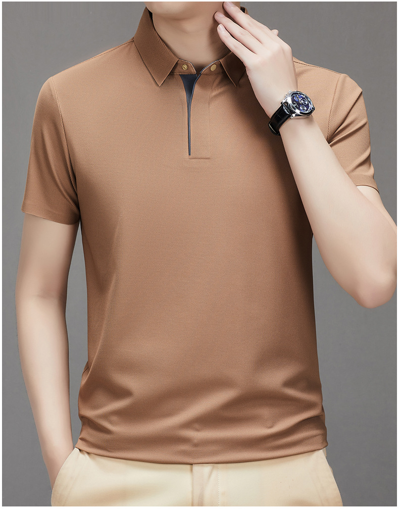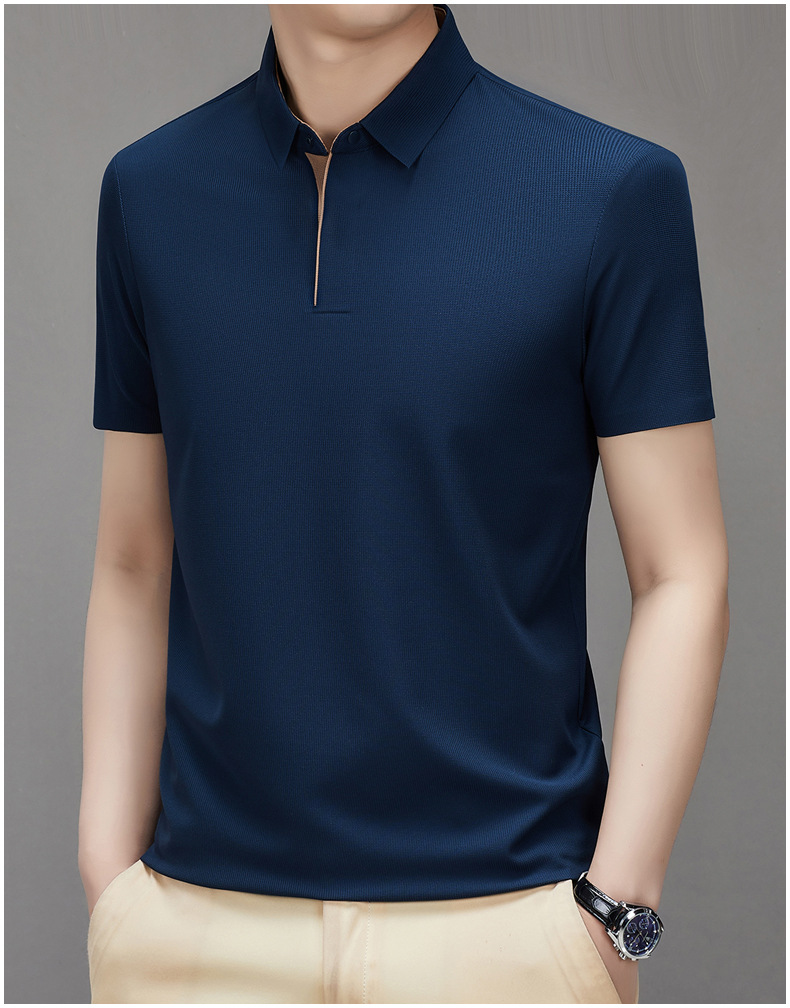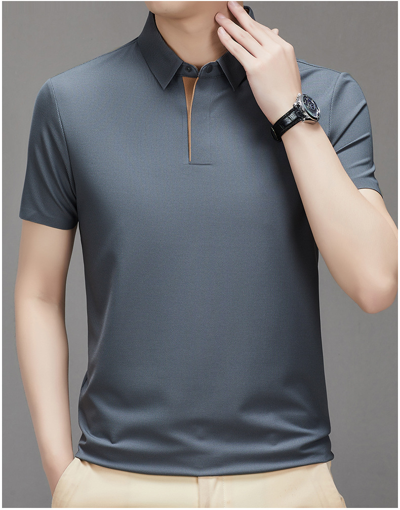 하이 엔드 남성용 헴 슬릿 원활한 프린트 티셔츠 여름 비즈니스 캐주얼 컬러 매칭 다크 라켓 옷깃 폴로 셔츠