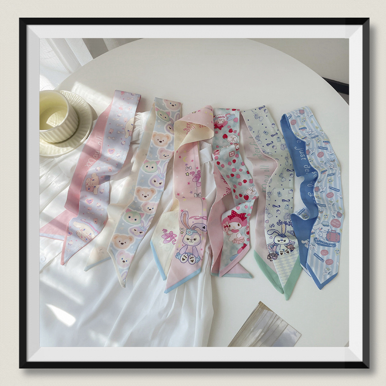 2025 어린이용 긴 만화 시리즈 리본 세트, 가방 장식, 머리 묶기, 선물 상자 장식, 다용도 실크 스카프 머리띠스토어 가기
